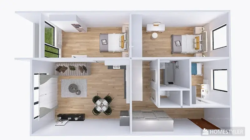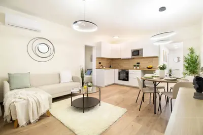 A lakás központi része a tágas, amerikai konyhás nappali, amely tökéletes helyszín a közös étkezésekhez és a meghitt esti beszélgetésekhez. A teljesen gépesített új konyha álom azoknak, akik szeretnek főzni – kerámia főzőlap, sütő, mosogatógép, elszívó és mikró is a rendelkezésre áll. A hálószoba a nyugalom szigete, míg a dolgozó/vendégszoba kényelmes megoldást nyújt akár munkavégzéshez, akár vendégek fogadásához.