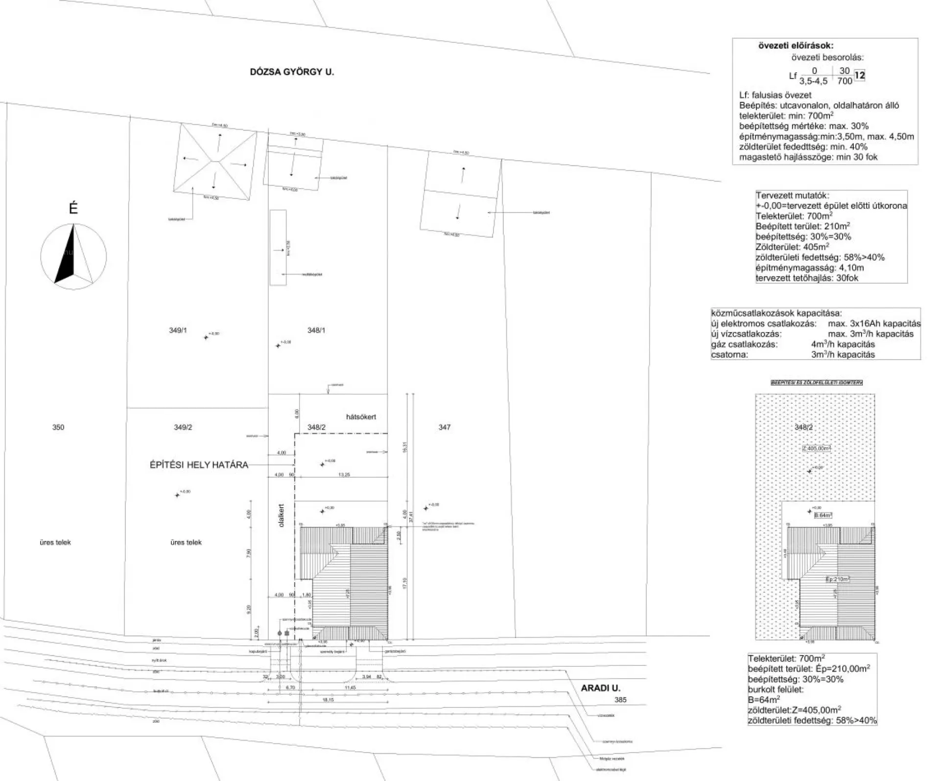 - beépíthetőség: 30% (mely ideális nagyobb ház építéséhez is)