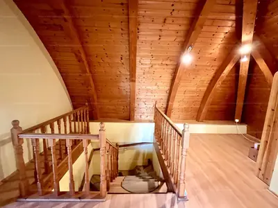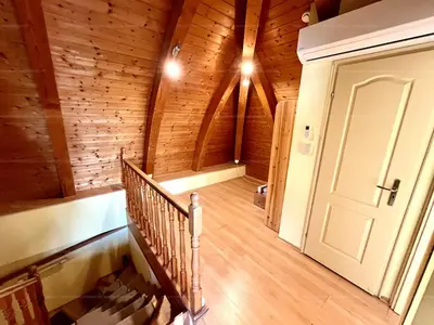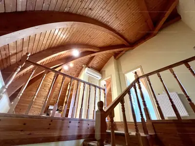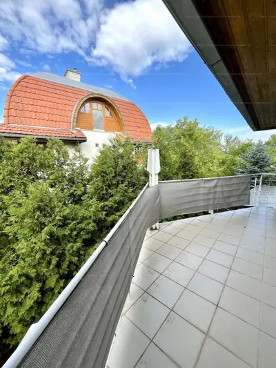 A lakás nagyon barátságos, otthonos, az első emeletre felérve találjuk. Belső két szintes, alsó szintjén egy nagyon tágas nappali-étkezőt és konyhát (32 nm) kamrával, egy kellemes panoráma-erkélyt, egy dolgozó/hálószobát (8nm), fürdőszobát, wc-t találunk, míg az emeleten 3 hálószoba és egy mosdó került kialakításra.