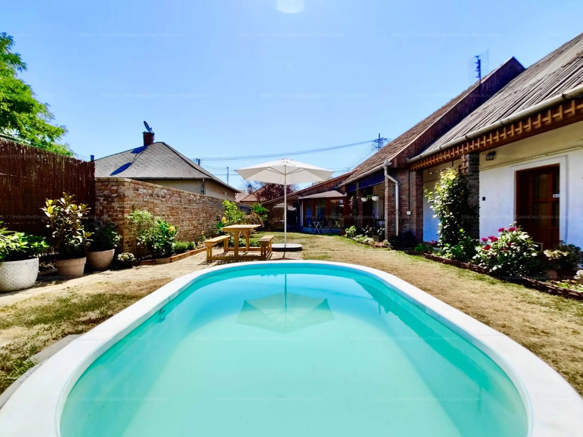 továbbá hátul egy nagy fedett tároló is tartozik! A tér hangulata mediterrán bájt idéz, ahol minden