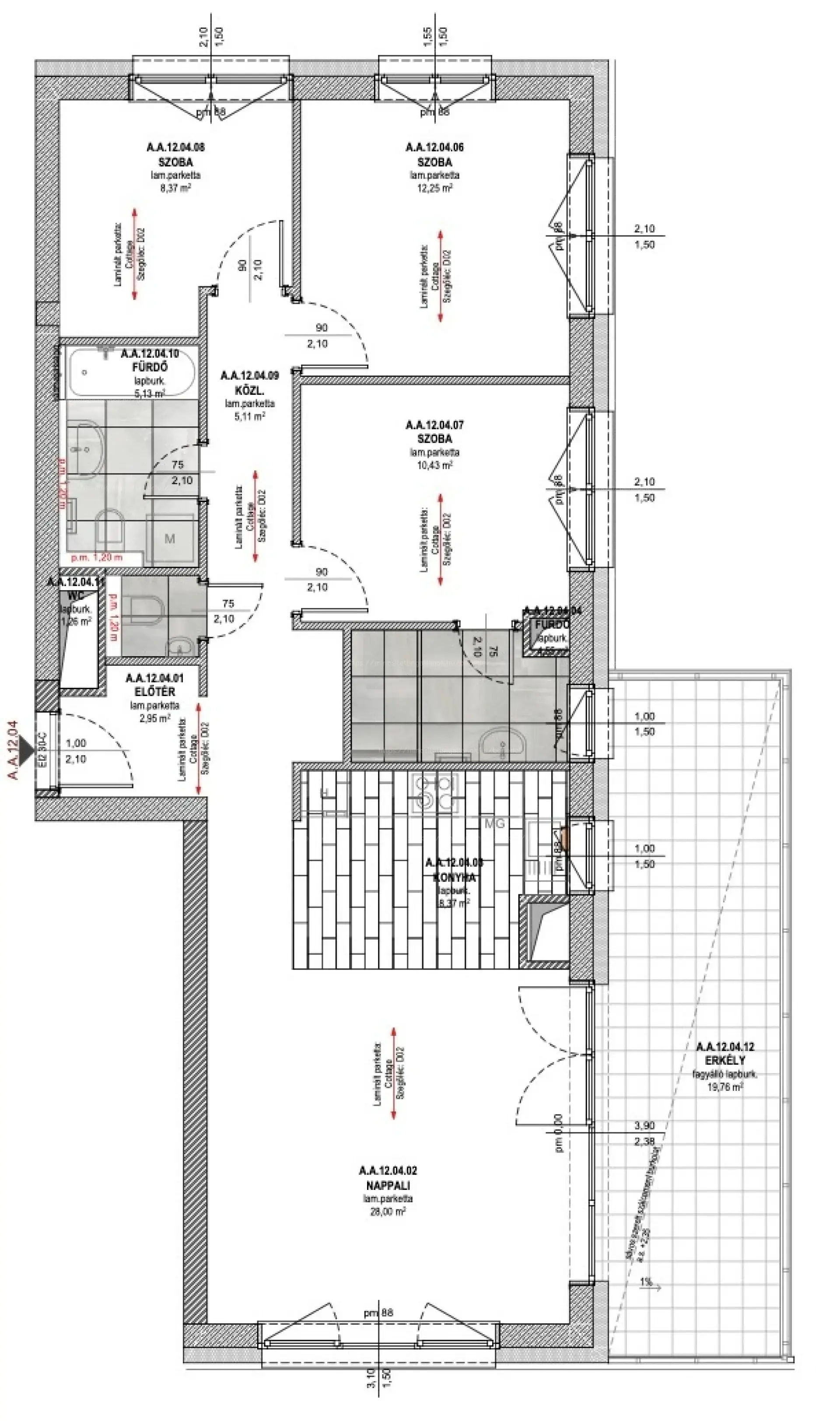 A 86 m²-es lakás modern, átgondolt elrendezésű, tágas terekkel és világos, délkeleti tájolással.