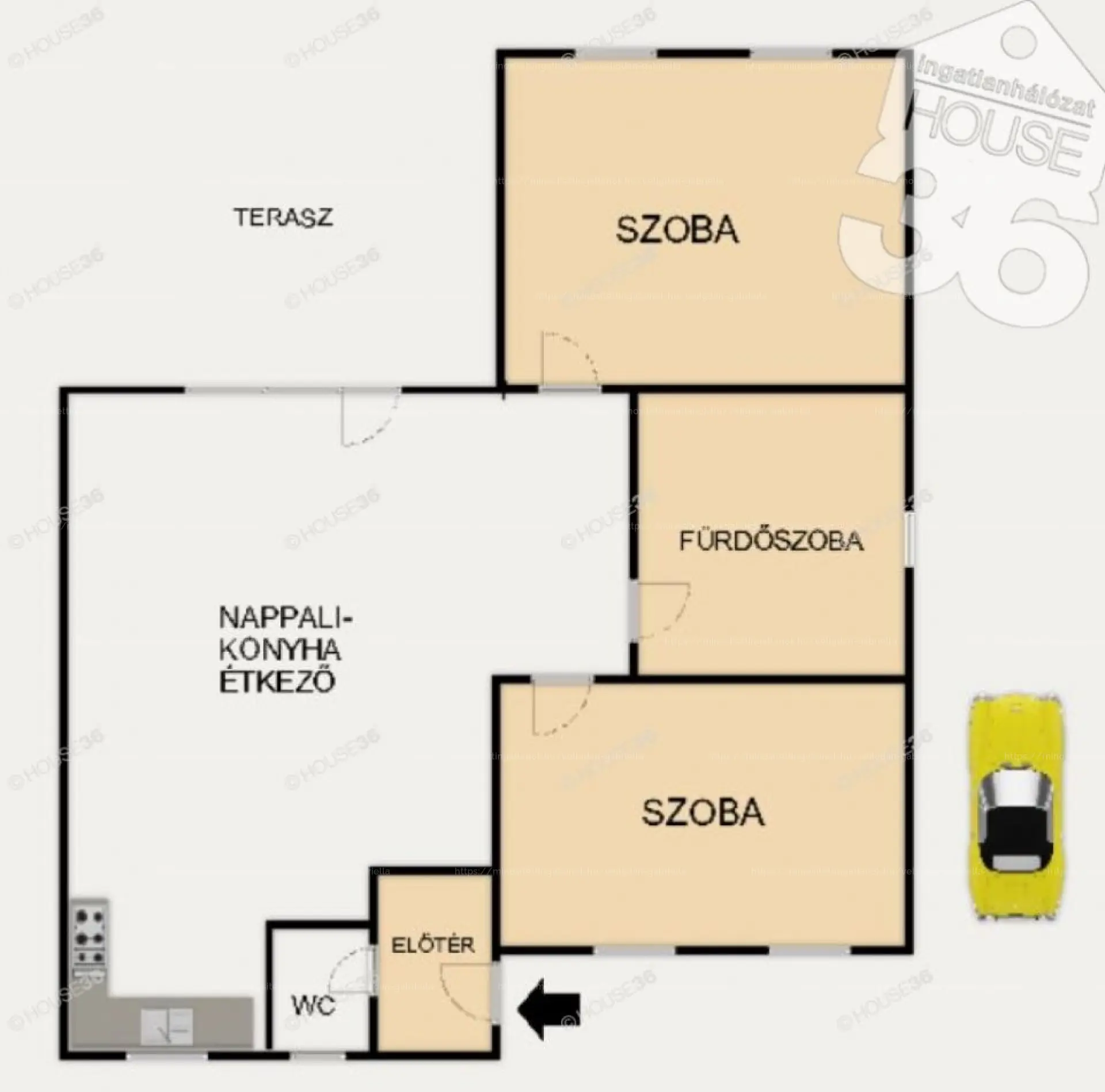 Gépkocsi beállási lehetőség közvetlenül a háznál – kényelmes parkolás, mindig elérhető hely.