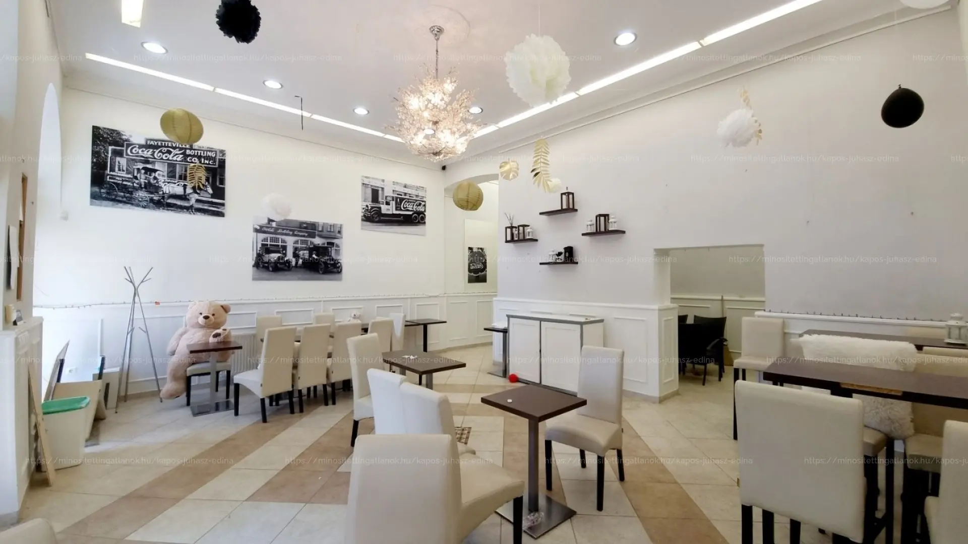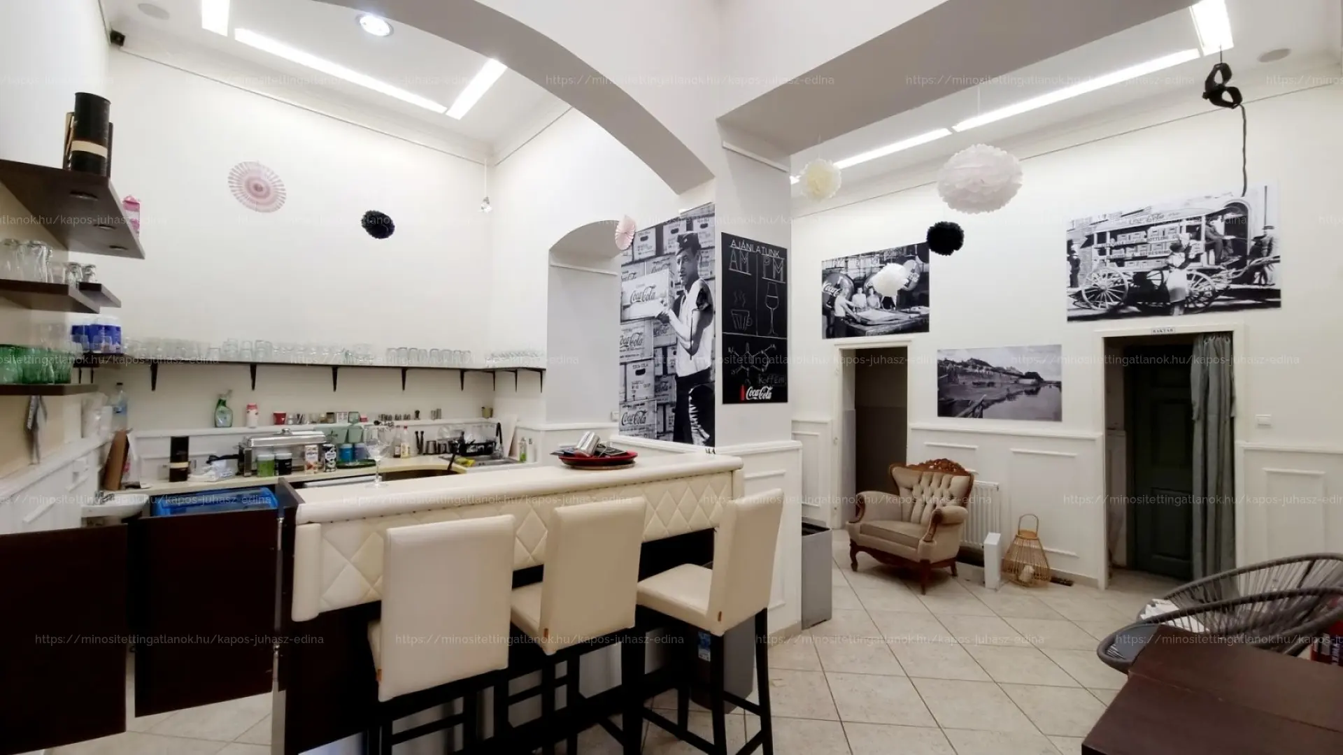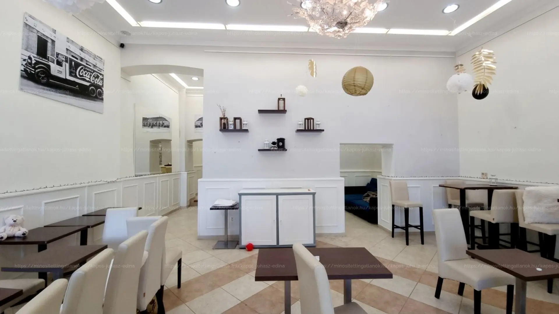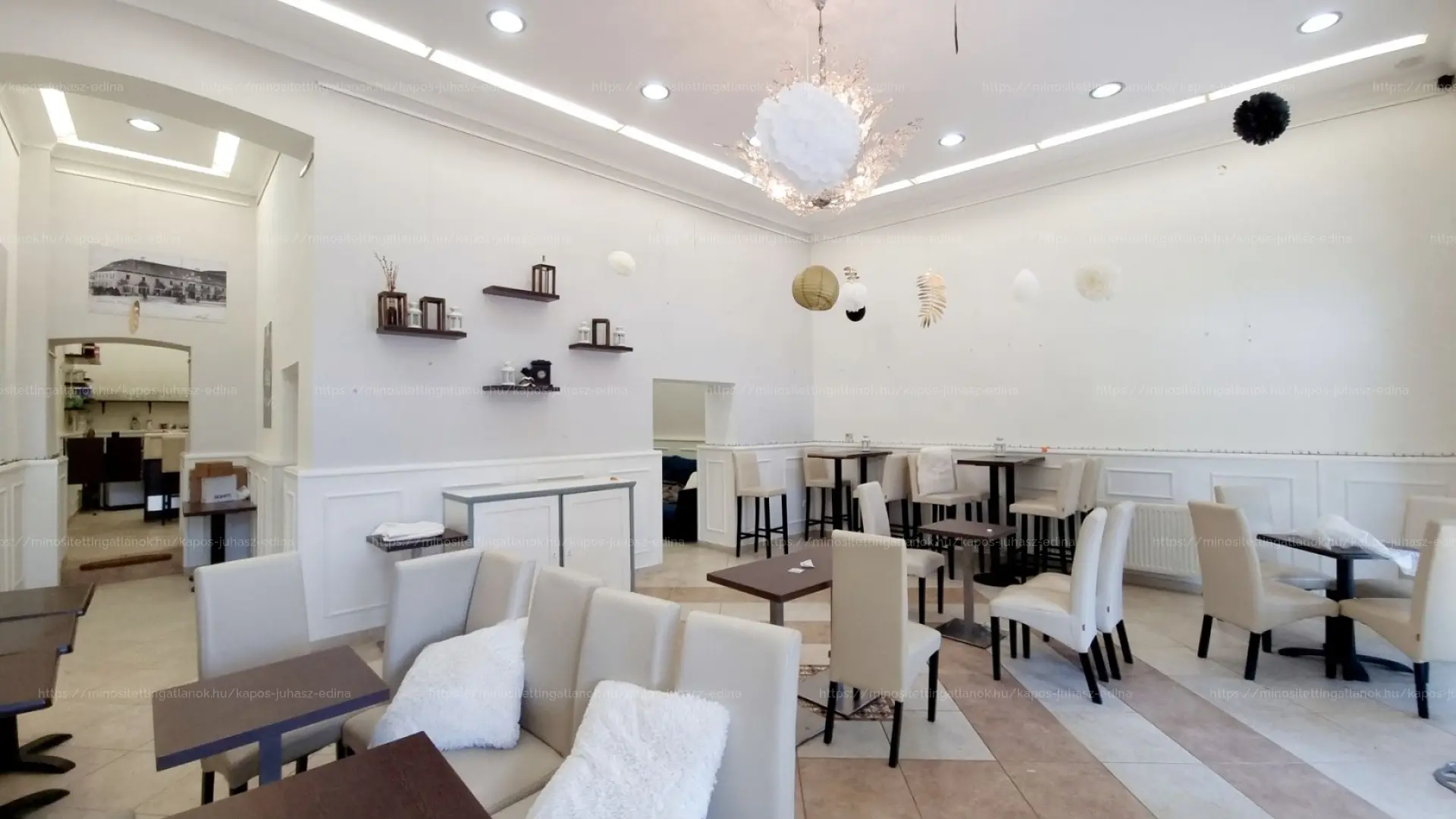 ☕ A 93 nm-es vendégtér korábban kávézóként üzemelt, részben szeparált, elegáns kialakítással.
