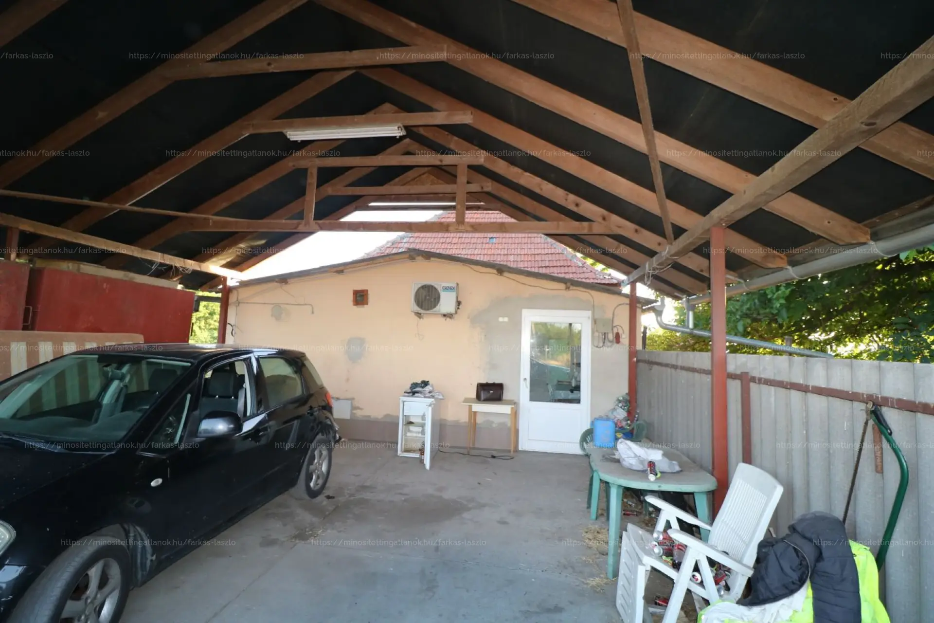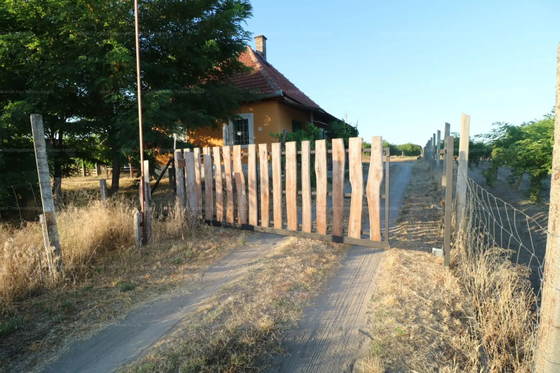 Az 5 db helyrajzi számon lévő ingatlanok közül az egyik egy belterületi (2017 m2-es) telek, közvetlen a bicikliút mellett. A terület nagy része körbekerített, ipari árammal ellátott, fúrt kút van. A tanya épülete jó szerkezeti állapotú (folyamatosan karbantartott), fűtés kályhával megoldott. A lakóépület fele alatt téglával kirakott pince található. A lakóépülethez épített fedett kocsibeálló 46 m2.