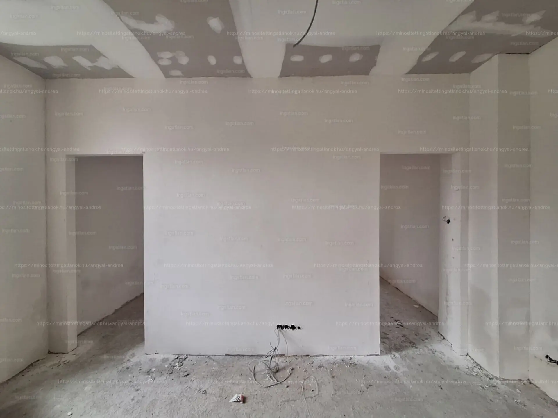 A 2 szobás ingatlan 2 szoba + amerikai konyha nappali elrendezésűre át lett alakítva.