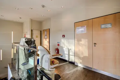 – A földszint és a félszuterén külön funkcionálhat (pl. recepció és kezelőtér).