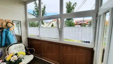 Az ingatlanhoz tartozik egy kisebb kertrész, 2 db kocsibeálló illetve egy tároló is.