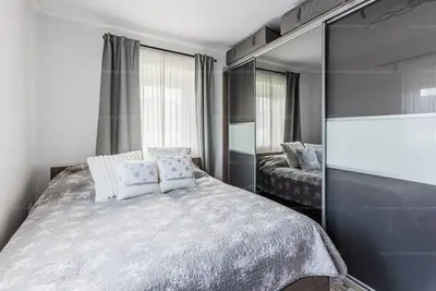 A ház 268 m2-s telken helyezkedik el. Az ingatlant parkosított és gondozott kert veszi körbe. A terület vízellátásáról fúrt kút, az öntözésről pedig automata rendszer gondoskodik. Az ingatlan központi helyisége, a 30 m²-es amerikai konyhás nappali és az innen nyíló 8 m²-es fedett terasz. A nagy üvegfelületek miatt a kinti és benti terek jól kapcsolódnak. Az alaprajz átgondolt, a helyiségek mérete és tájolása megfelelő. A terek tágasak, a ház körbenapozott. Az alsó és felső szint elkülönül, így a szülők nyugodtan pihenhetnek a földszinten, a gyerekek pedig az emeleten vagy a kertben vezethetik le fölös energiájukat. A biztonságról riasztó és kamerarendszer gondoskodik. Az ingatlan tulajdoni lapon csak 85 m2.