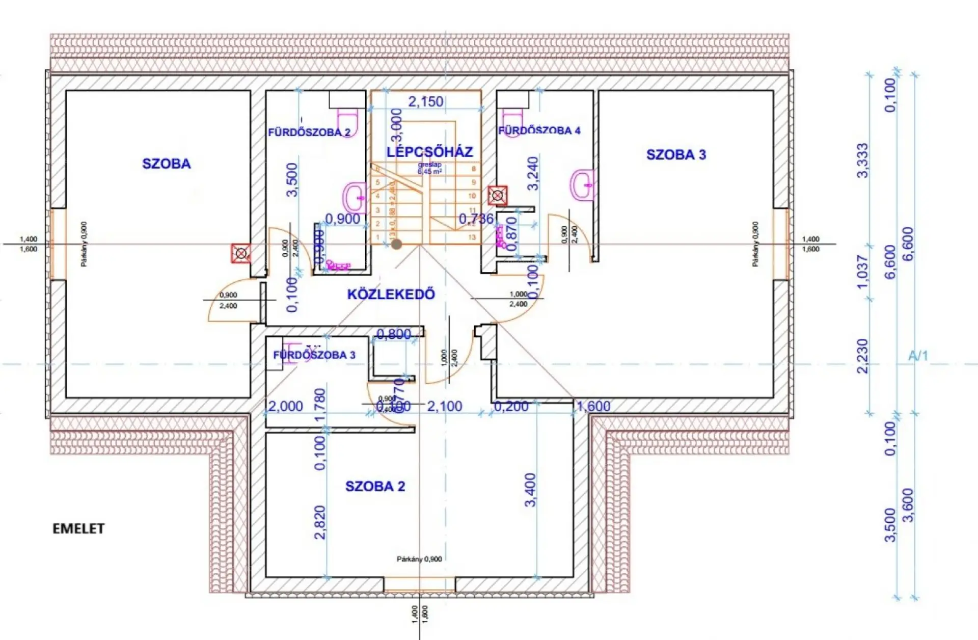 Tervszerű elrendezés: földszint – TÁGAS nappali/konyha/étkező + egy szoba saját fürdővel; emelet – 3 szoba, mindegyikhez SAJÁT FÜRDŐSZOBA, plusz külön bejáratú WC és tágas TÁROLÓSZEKRÉNY. Gyors, STABIL internetkapcsolatot kiépített Starlink rendszer garantálja.