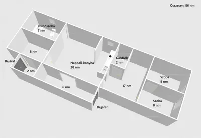 Nyirádon 86 nm-es családi ház eladó – praktikus, rugalmas megoldás gyermekes családoknak.