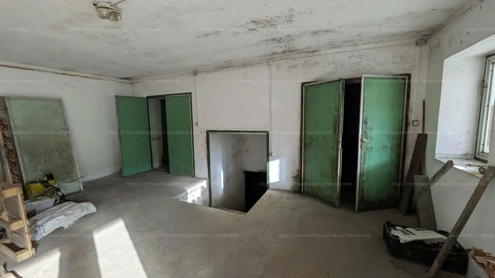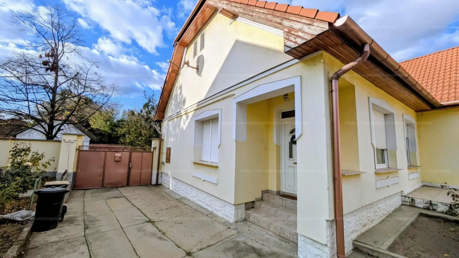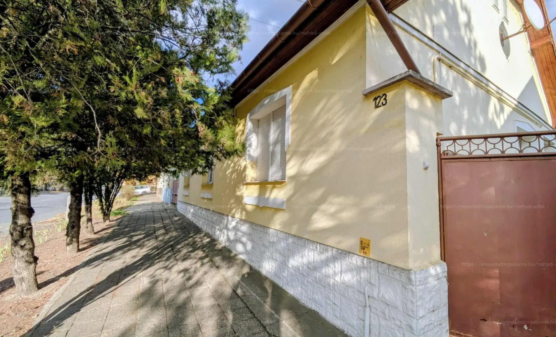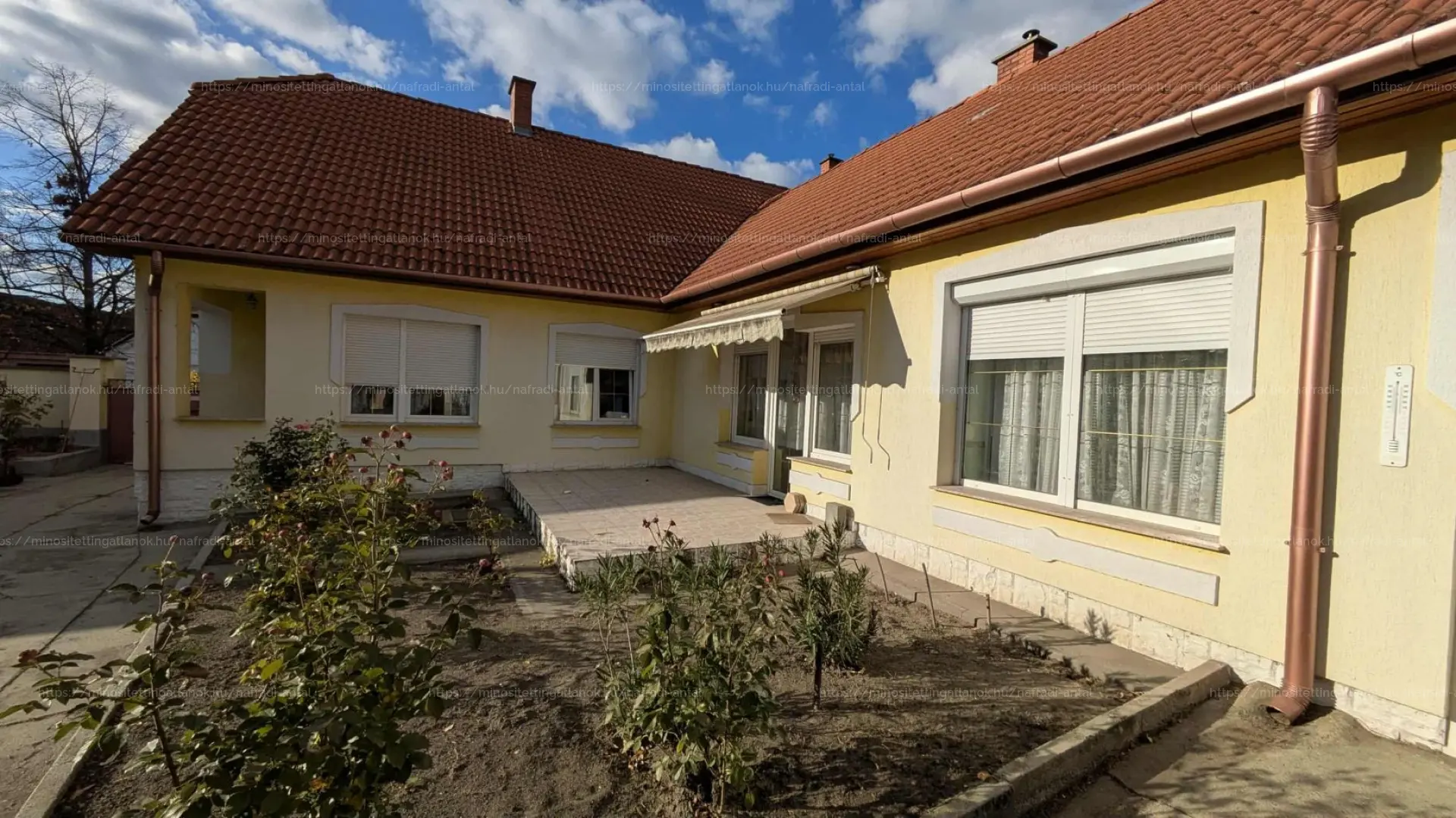 Széles utcafrontú, 1830 m2-es telekre téglából épült a 175 m2-es ház. Előszoba, 4 egész és 1 fél szoba, hall, tágas étkező-konyha, 2 kamra, fürdőszoba, közlekedő, háztartási helyiség, nyárikonyha és 2 külön WC alkotja. A ház egy része alatt 10 m2-es száraz pince található. A belső tereket jól kihasználható 16 m2-es, kitekerhető napellenzővel épült terasz egészíti ki, valamint nagy, 25.5 m2-es garázs.