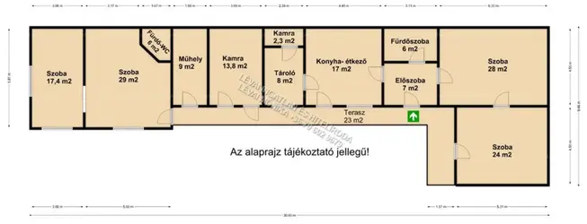 Az ingatlan 1365 m2 -es telken található. Vegyes falazatú épület. Az épület hosszában nyitott folyosó húzódik. Innen tudunk bejutni a különböző helyiségekbe.