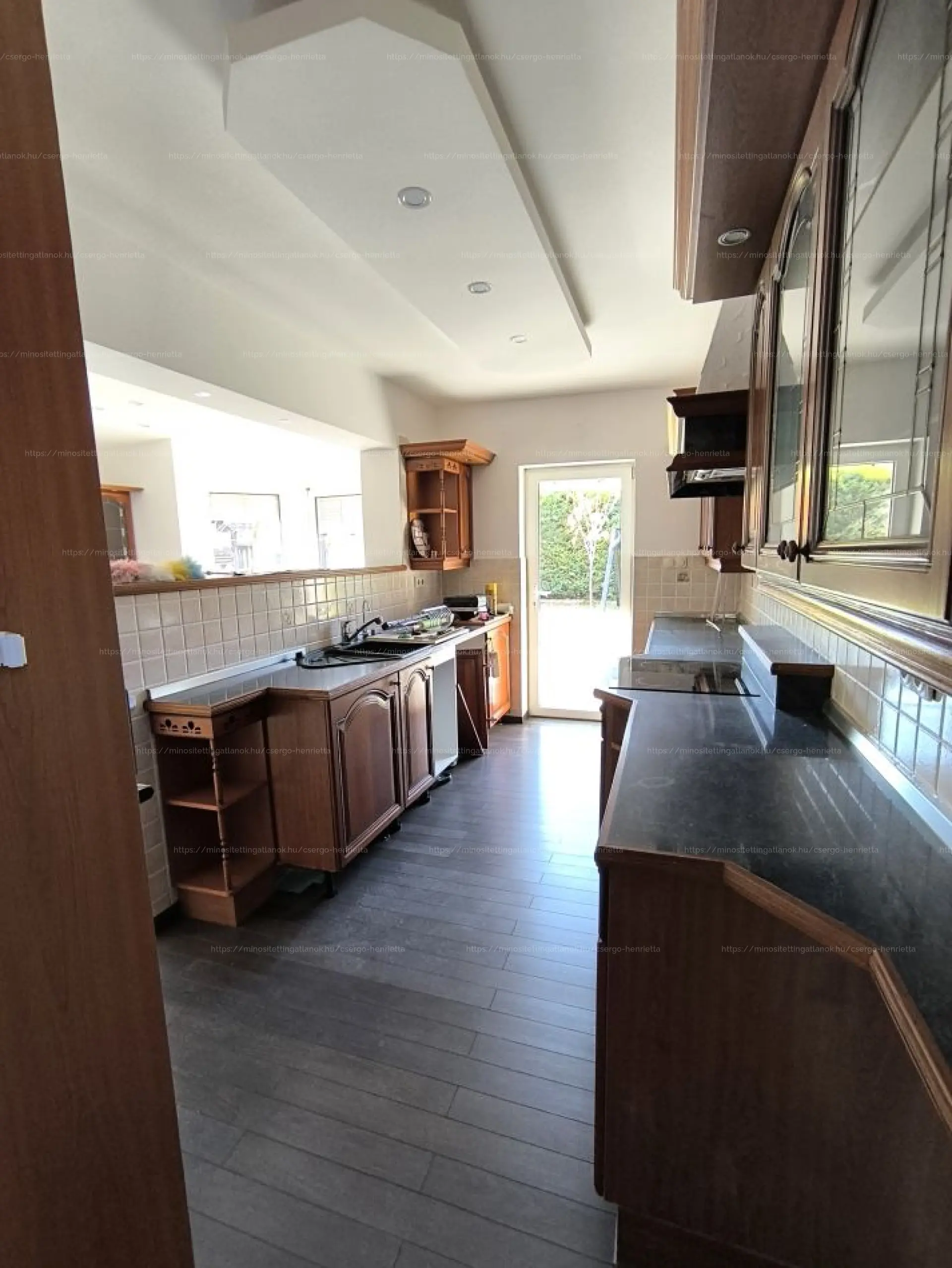 A parkosított kertben automata öntözőrendszer, fúrt kút, sütögető rész és gyermekjátszótér teszi teljessé az otthon élményét.