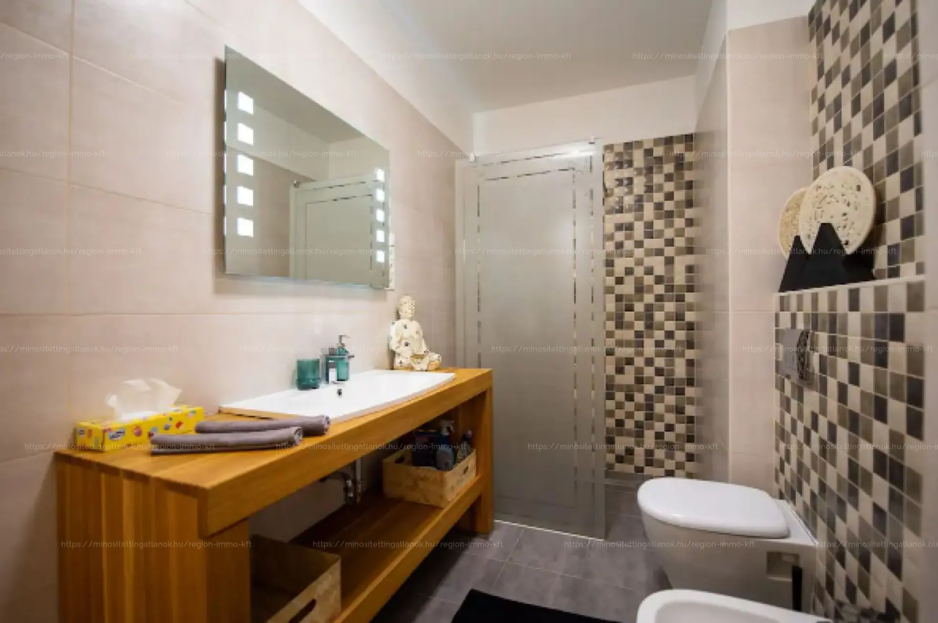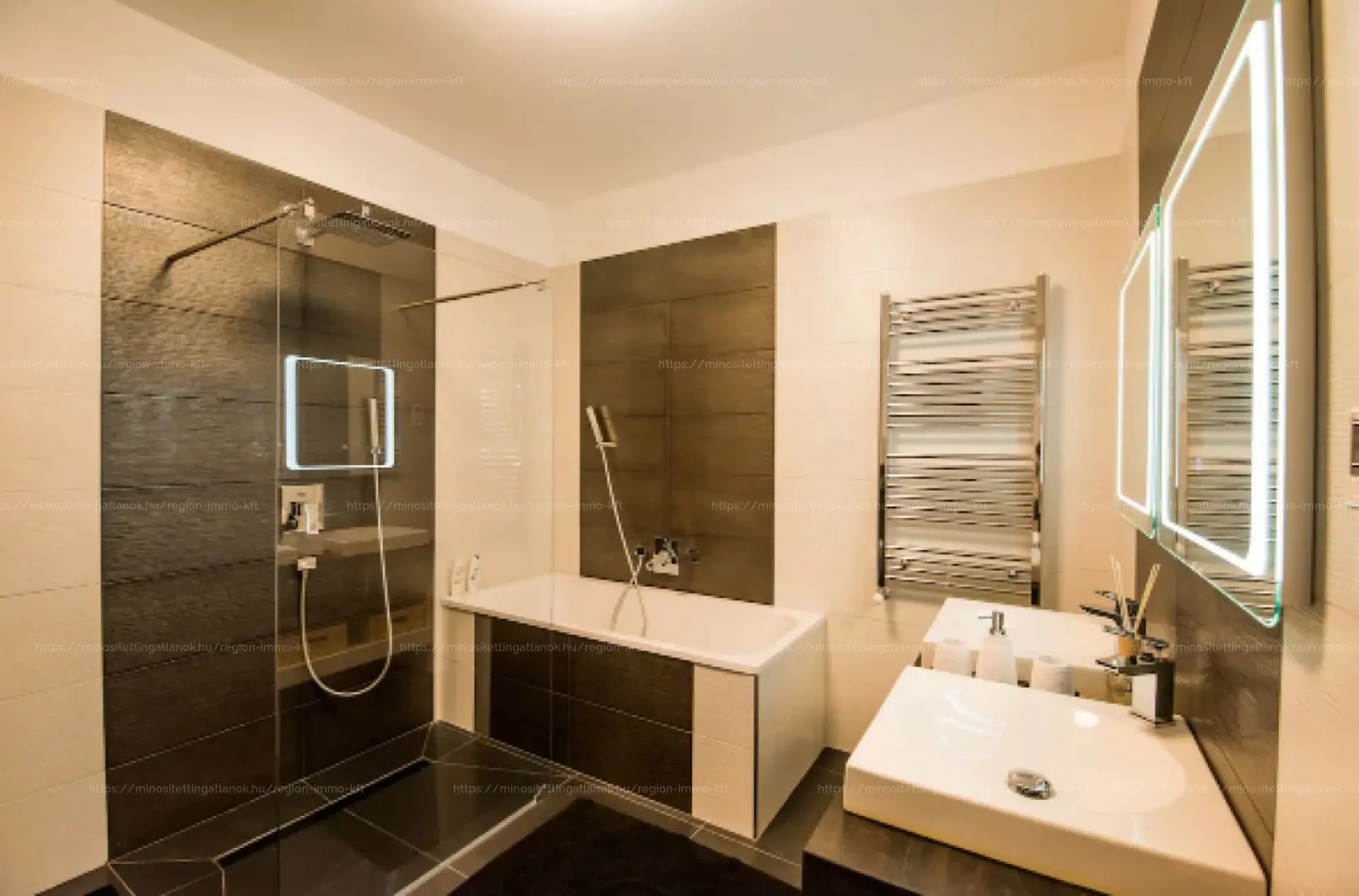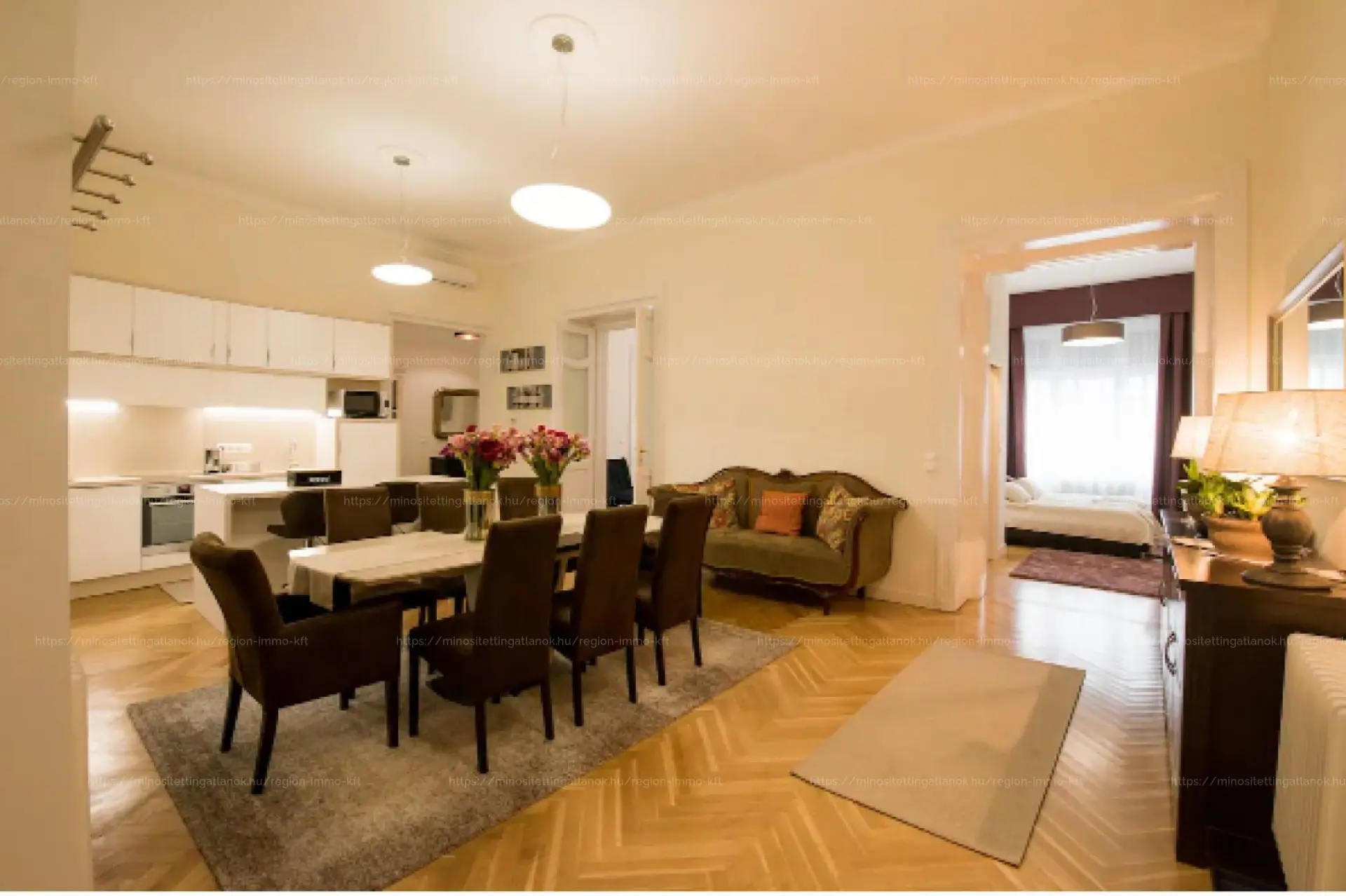 1.) lakás, 136 nm,3 háló szoba,2 fürdőszoba, amerikai konyhás nappali, mosó konyha,2 vendég wc.
