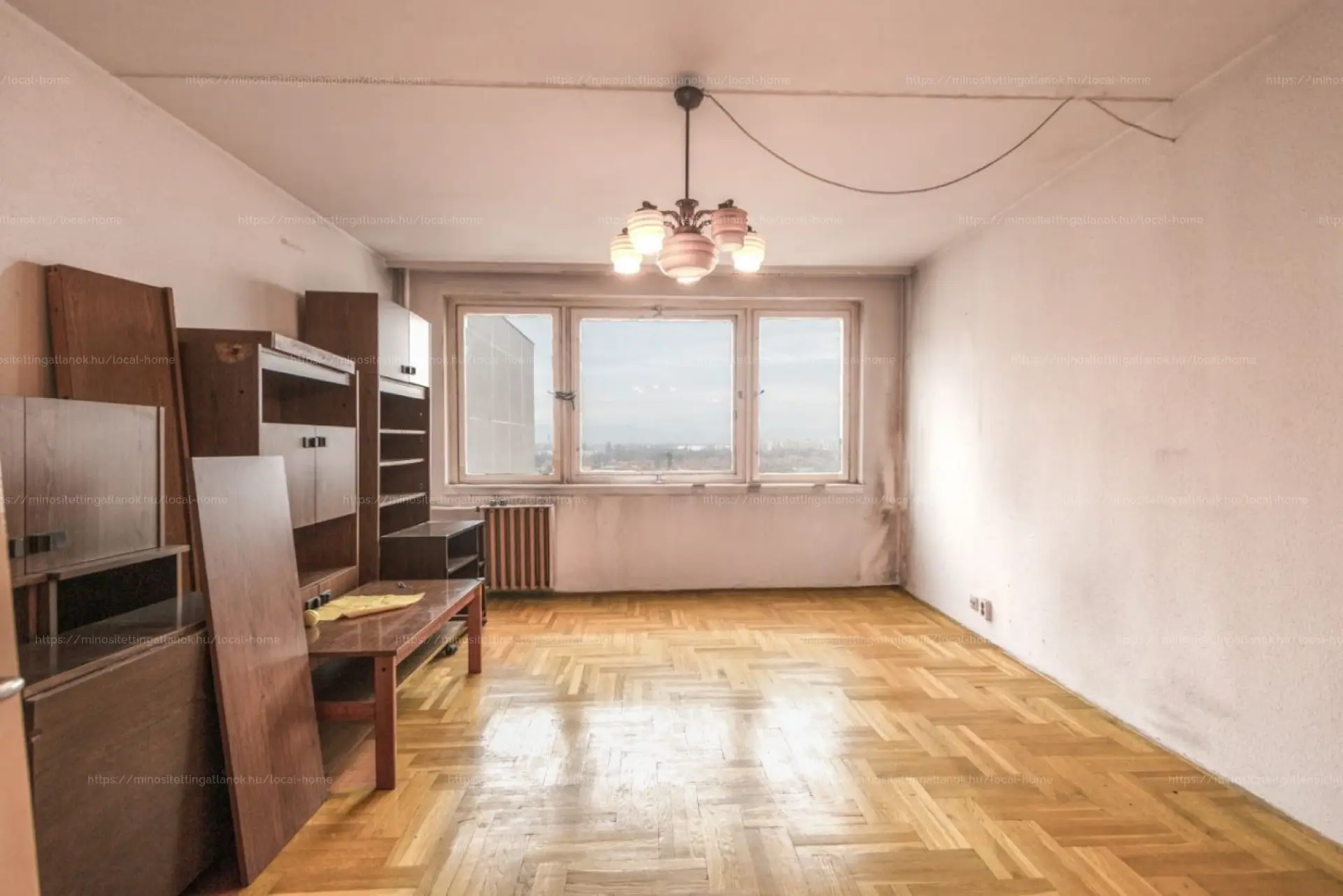 Eladó egy napfényes 9. emeleti 1+1 félszobás lakás.