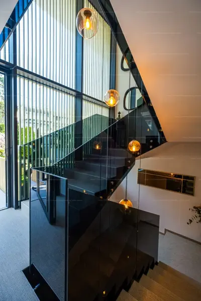 A délre tájolt, 40 m²-es terasz és a hatalmas üvegfelületek 180°-os panorámát nyitnak a Pasarétre és az Istenhegyre. A közel 400 m²-es, kizárólagos használatú kert Budán igazi ritkaság: parkosított, automata öntözőrendszerrel, szaunaház- és jacuzzi-előkészítéssel. Egy hely, ahol a város ritmusa lelassul, és a természet kerül a középpontba.