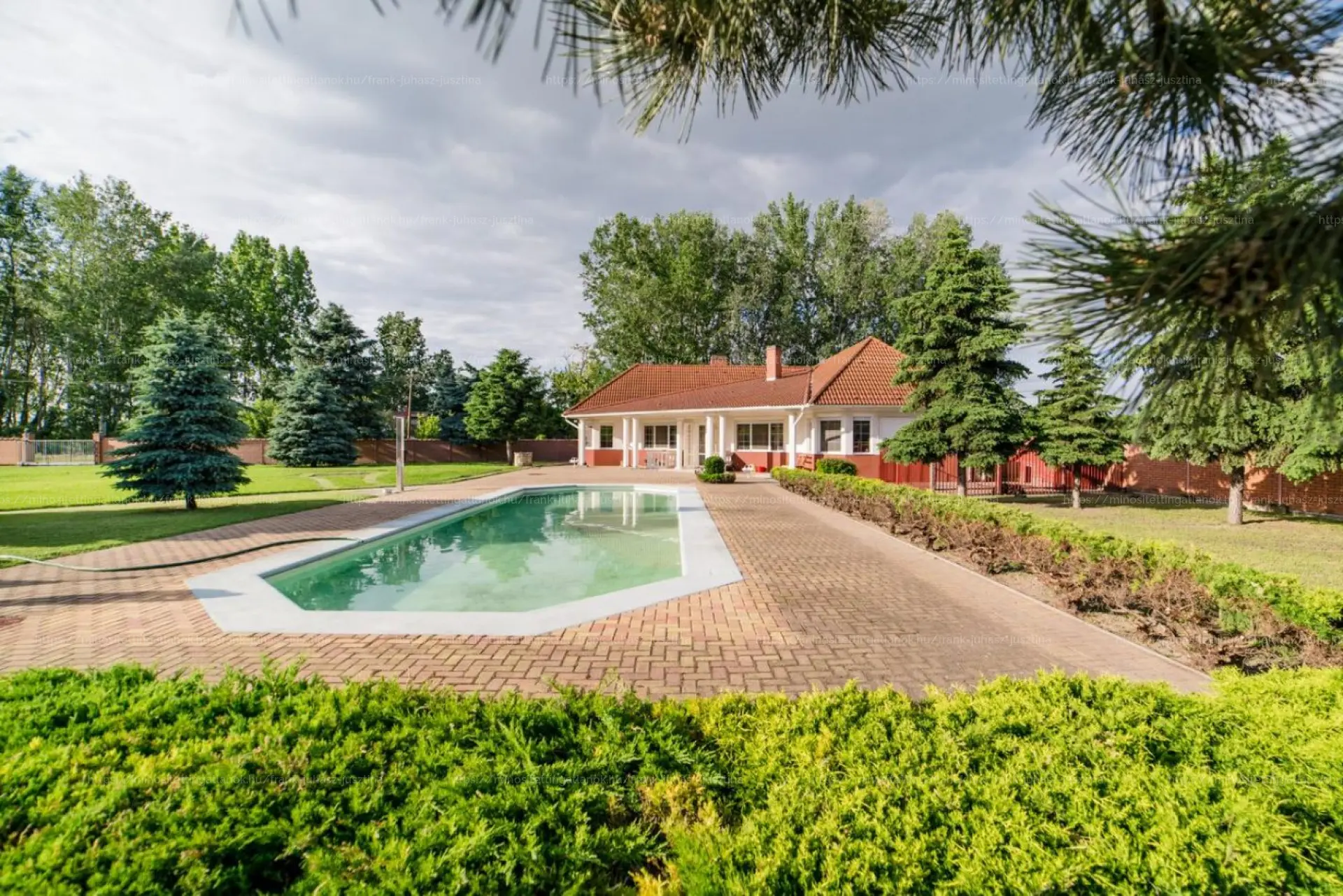 3 LAKÓHÁZ, ÚSZÓMEDENCE, 8 beállós, FŰTÖTT garázs, TENISZPÁLYA