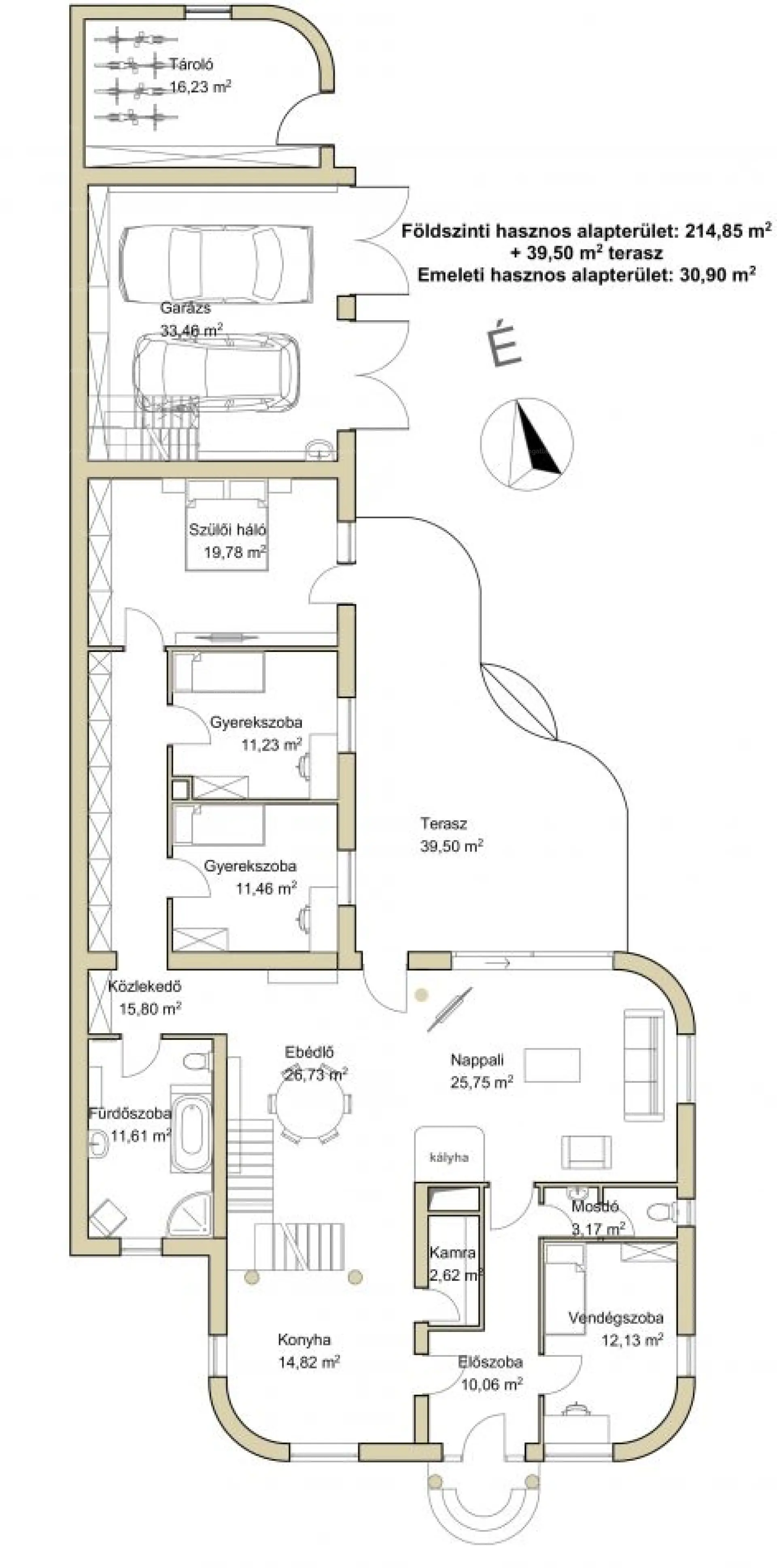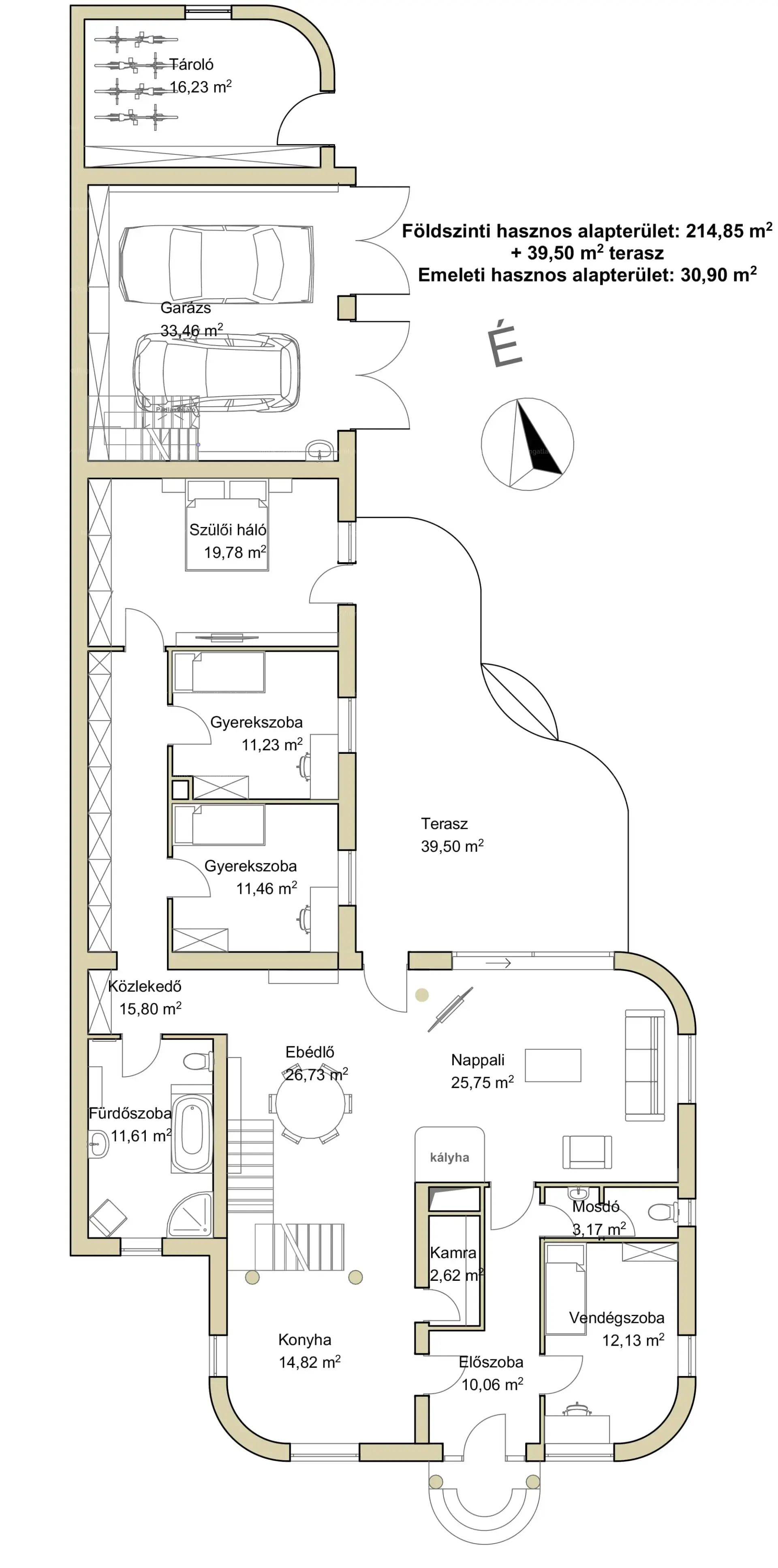 A NAGYMÉRETŰ FÜRDŐSZOBÁBAN KÁD ÉS ZUHANYZÓ is elérhető, ami MINDENNAPI KÉNYELMET jelent nagyobb családok számára. Az emeleten további EGY TELJES ÉRTÉKŰ SZOBÁT, MOSDÓT, MOSÓKONYHÁT és még BE NEM ÉPÍTETT LAKÓRÉSZT is találunk, amely új funkciók kialakítására ad LEHETŐSÉGET.