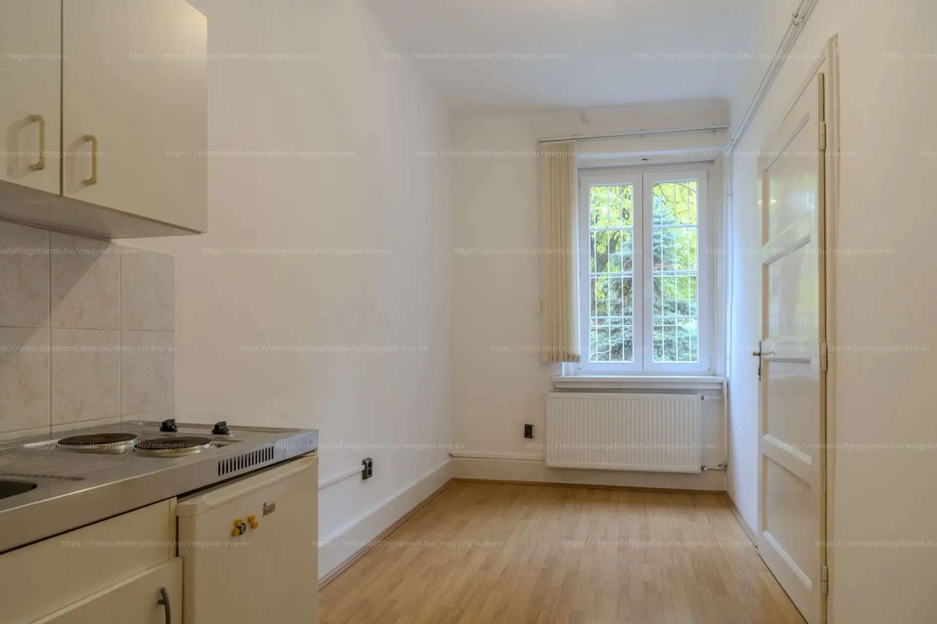 Az 1932-ben épült, 5 lakásos társasház földszintjén található, a kert felől KÜLÖN BEJÁRATON át közelíthető meg. A lakás DK-i fekvésű, VILÁGOS, CSENDES, ablakai a kertre néznek. Belmagassága 3,1 m, így TÁGAS érzetet ad. Fűtése CIRKÓ. A ház és a lakás is JÓ ÁLLAPOTÚ. Kevés bútor található benne, ezért RUGALMAS BERENDEZÉSRE alkalmas.