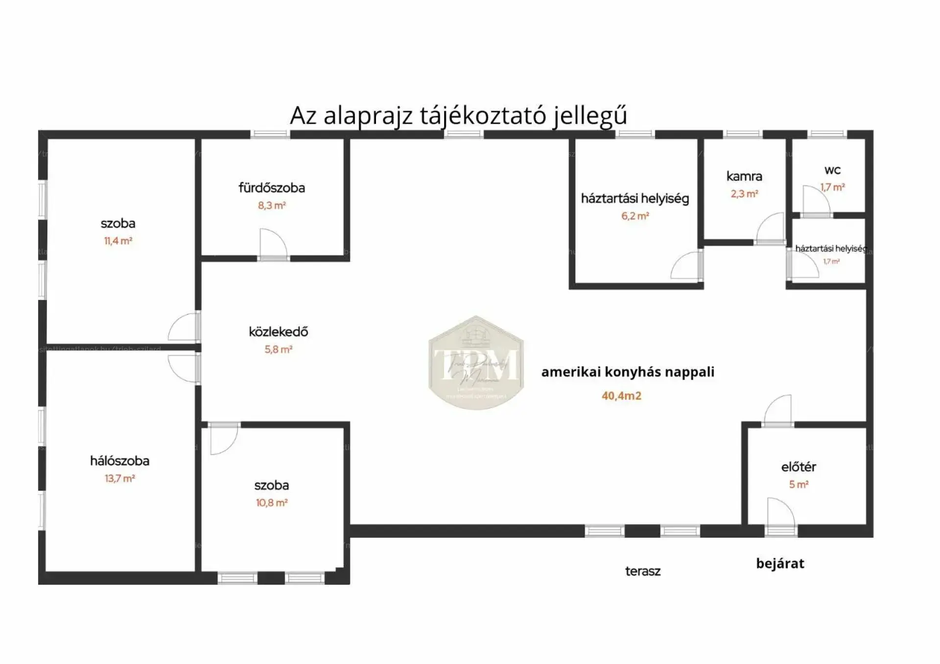 103,7 m2 LAKÓTERÜLET, SAJÁT 690 m2-es KERT: az ingatlan amerikai konyhás nappalival + 3 egész szobával, kamrával, háztartási helyiségekkel és padlásfeljáróval (kb. 10–12 m2 tároló) rendelkezik. PRAXISOS, VILÁGOS terek nagy tolóajtóval, jól kihasználható alapterület – gyerekes családoknak praktikus elrendezés.
