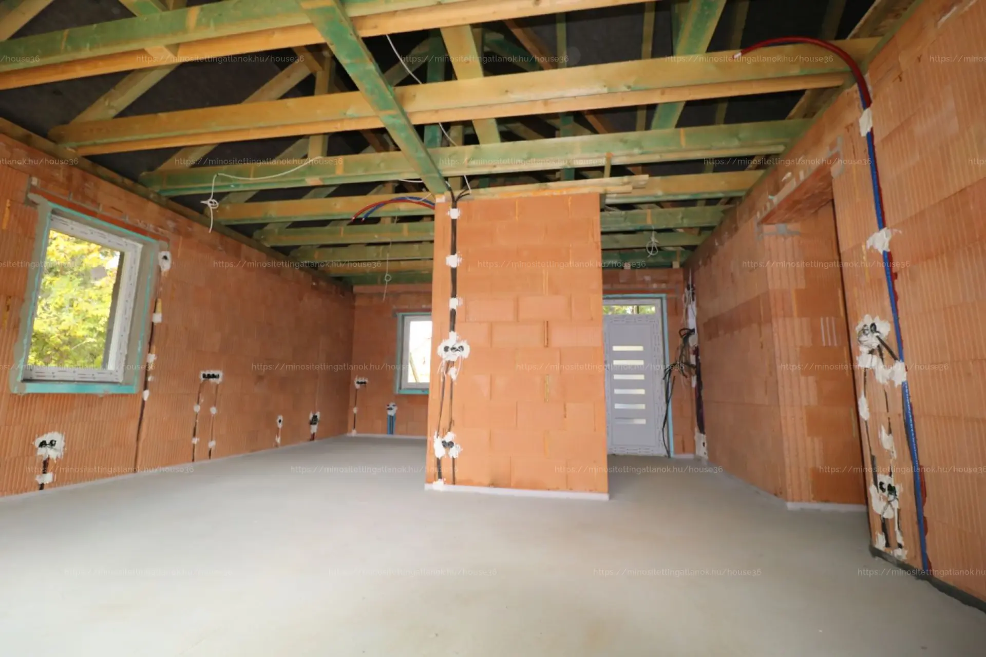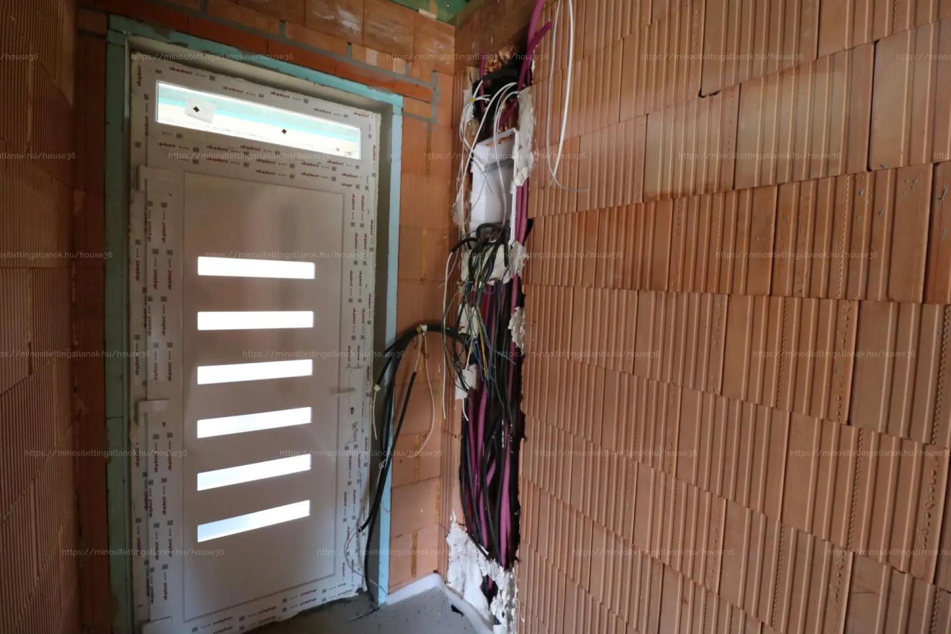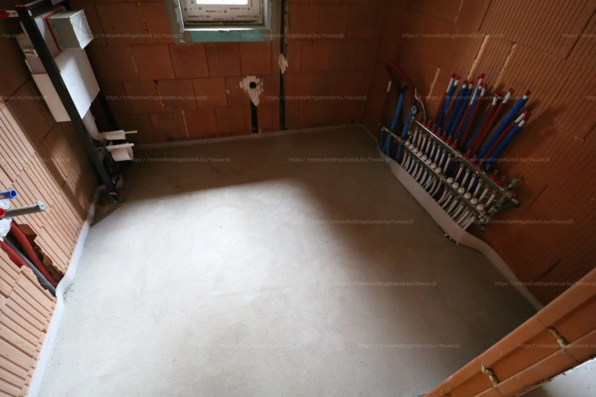 Új építés: porotherm 30-as tégla falazat, porotherm tégla válaszfalak, hőszivattyús padlófűtés rendszer, grafitos homlokzati szigetelés, 3 rétegű hő és hangszigetelő övegezéssel szerelt műanyag nyílászárók, választható burkolatok stb...