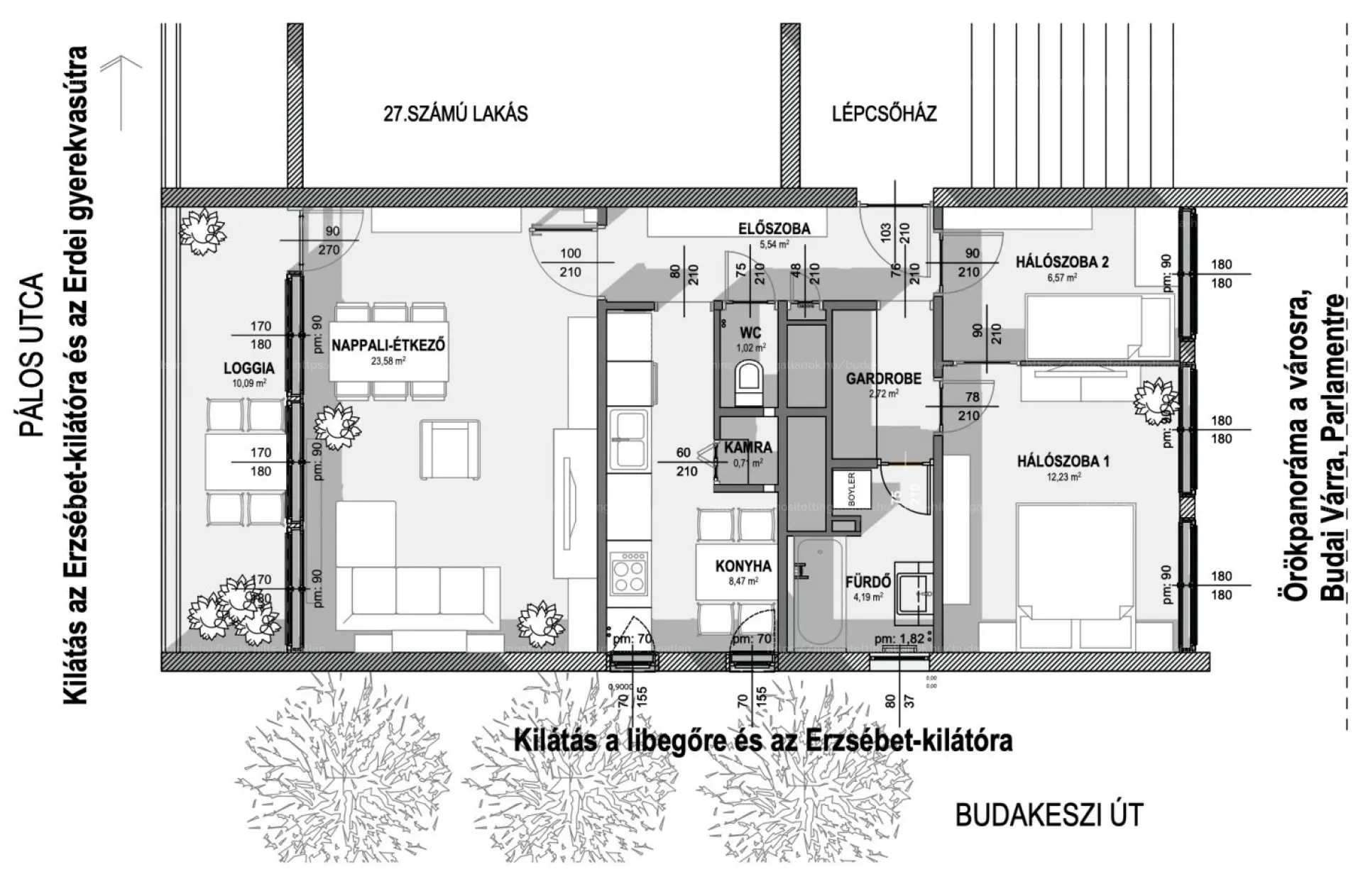 A 70 sqm, panoramic, 3-room apartment in a condominium is for sale in Hárshegy. The balcony offers a view of the Buda hills, and the bedroom offers a view of the city panorama. The walls inside the apartment are freely movable, so you can freely adapt it to your own needs. Forest hiking trails are a few minutes away, and Széll Kálmán Square and Mammut shopping centre is 10 minutes away.