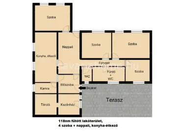A lakóingatlan, mely 118 m² alapterületű, jól karbantartott, megkímélt állapotú.
