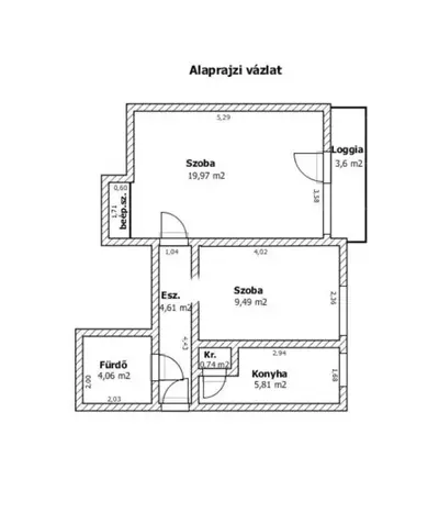 Az ingatlan frekventált főút mellett egy négyemeletes társasház 2. emeletén helyezkedik el. A komfortos lakásban egy szoba, egy félszoba, egy konyha, egy kamra, egy előszoba, egy fürdőszoba-WC helyiség és egy erkély kapott helyet. Az épület homlokzata nincs szigetelve, ennek ellenére a lakás rezsiköltsége alacsony, mert minden oldalról körbefűtött.