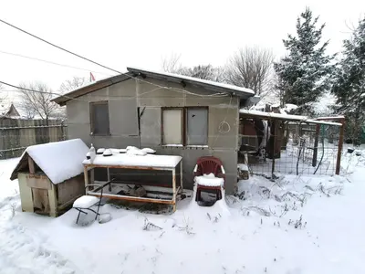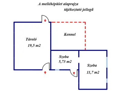 A különálló könnyűszerkezetes kivitelezésű melléképületben kettő szoba, egy tároló és egy kennel lett kialakítva.