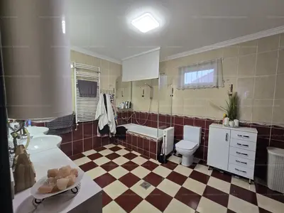 - Nagyméretű fürdőszoba dupla mosdóval és káddal