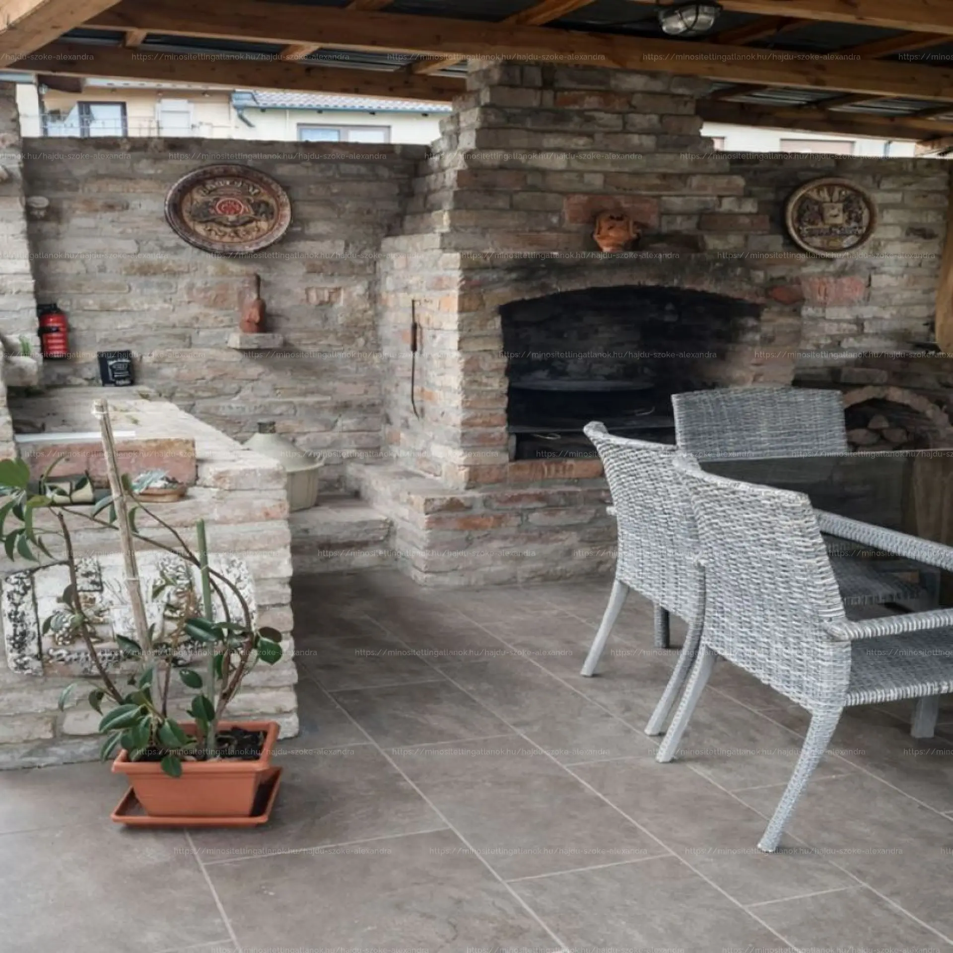 Két fedett terasz, kerti sütögetővel és grillezővel