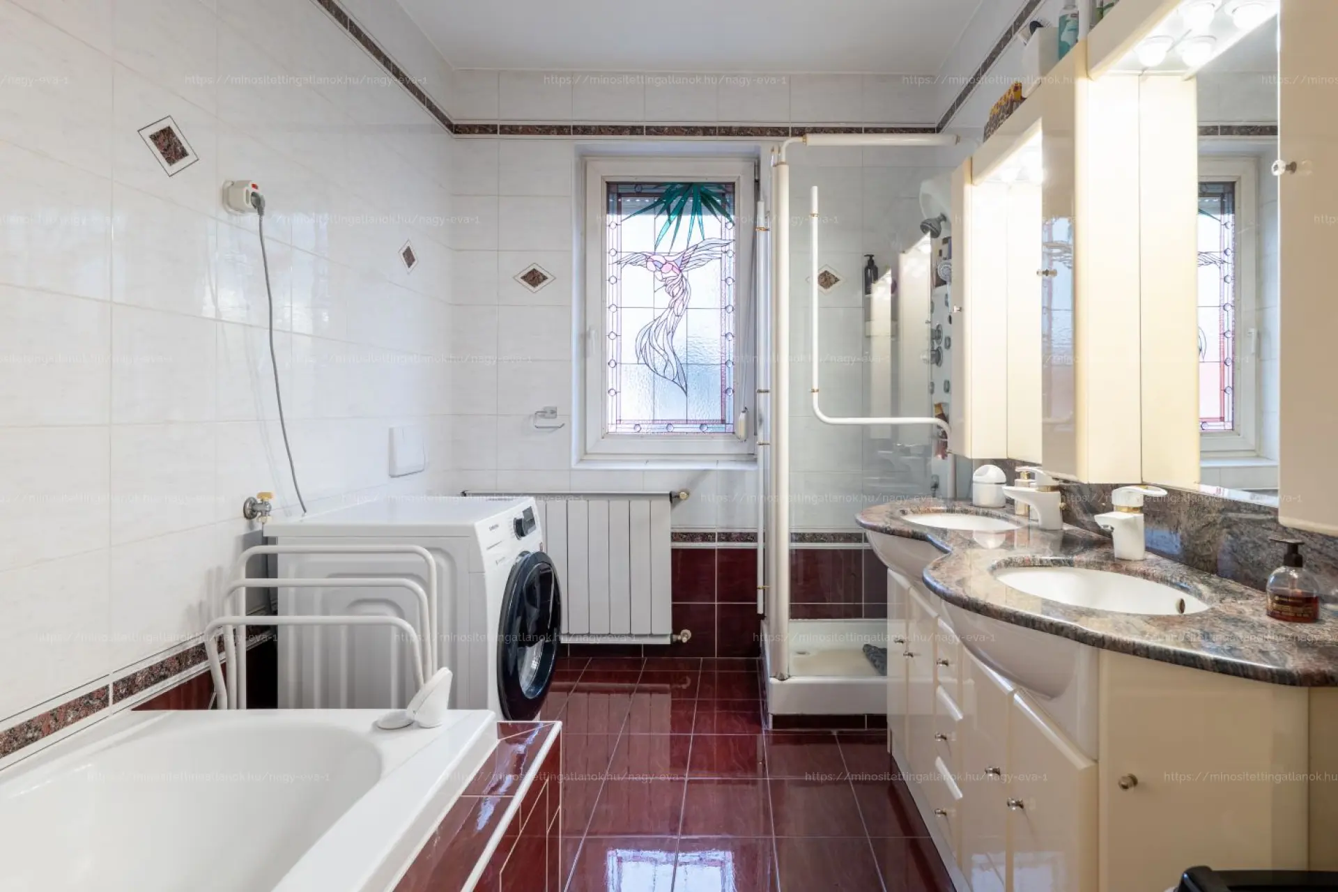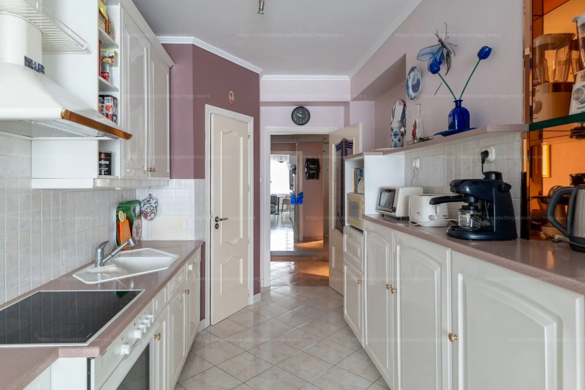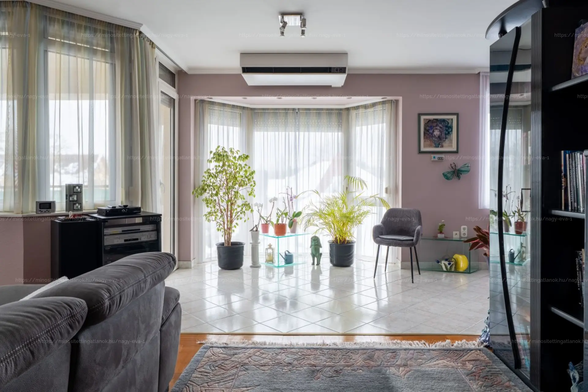 . Modern komfort: Klímával felszerelt, műanyag hőszigetelt ablakokkal és redőnyökkel ellátott lakás, ahol a meleget padlófűtés és radiátorok biztosítják.