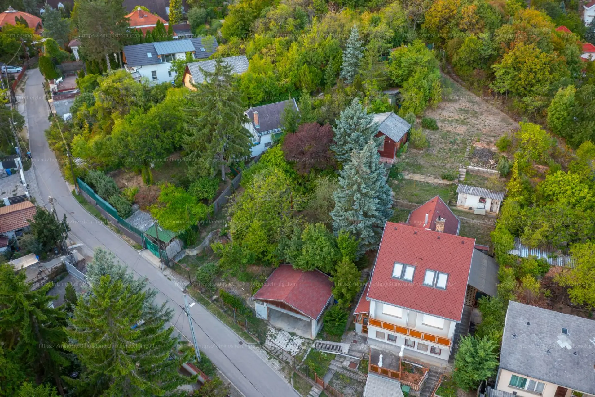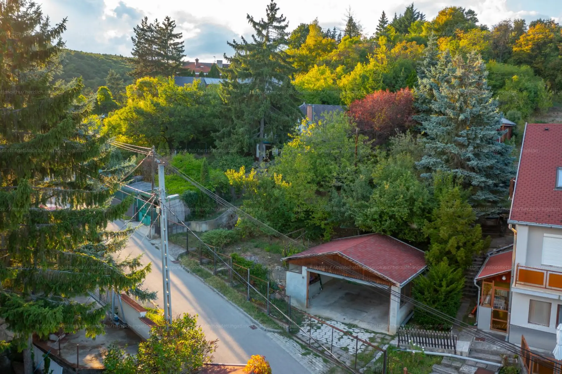 Solymár kedvelt részén kínáljuk megvételre ezt a 887 m²-es, panorámás telket, amely minden közművel (víz, villany, csatorna) ellátott. A telken jelenleg egy kisebb faház áll, de a tervezés már jóval előrébb tart: elkészültek egy modern, lépcsőzetes kialakítású, négy szintes, zöldtetős családi ház építési tervei.