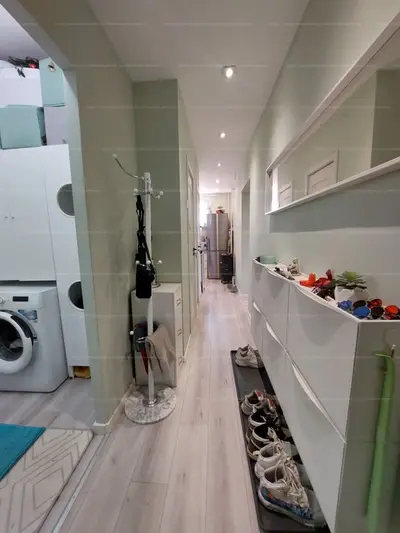 A külön GARDRÓBHELYISÉG-ben MINDEN KÉNYELEM adva van, beleértve a beépített MOSÓ-SZÁRÍTÓGÉPET is.