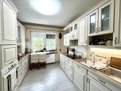 -gépesített egyedi konyhabútor (mosogatógép, kerámialapos főzőlap, elektromos sütő, elszívó, hűtő)
