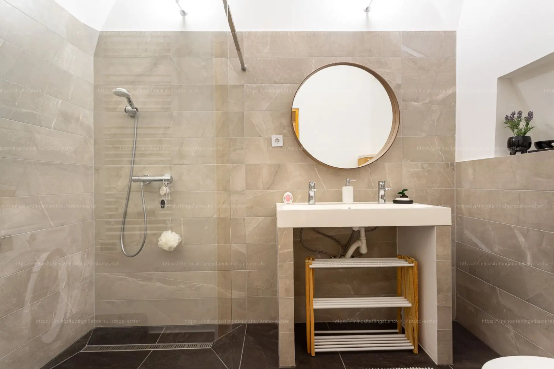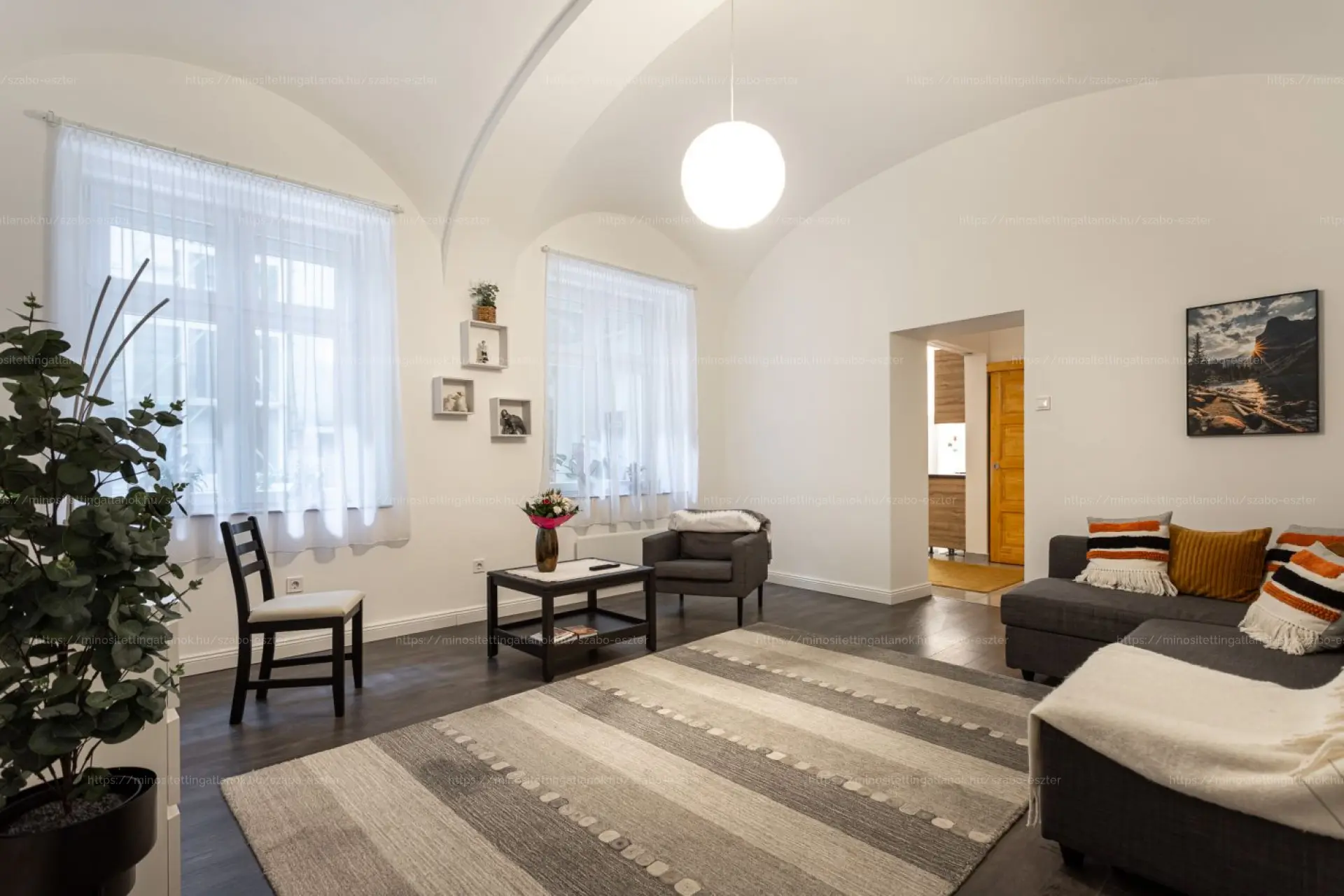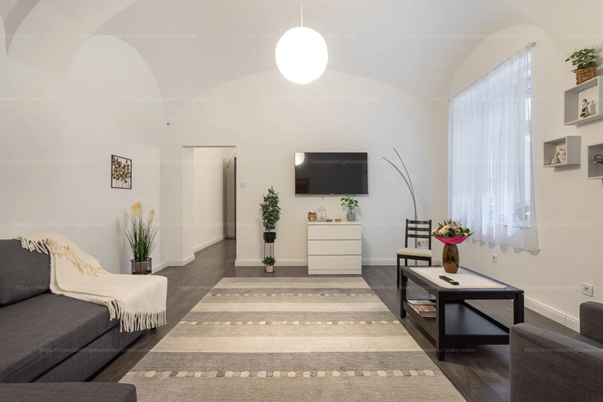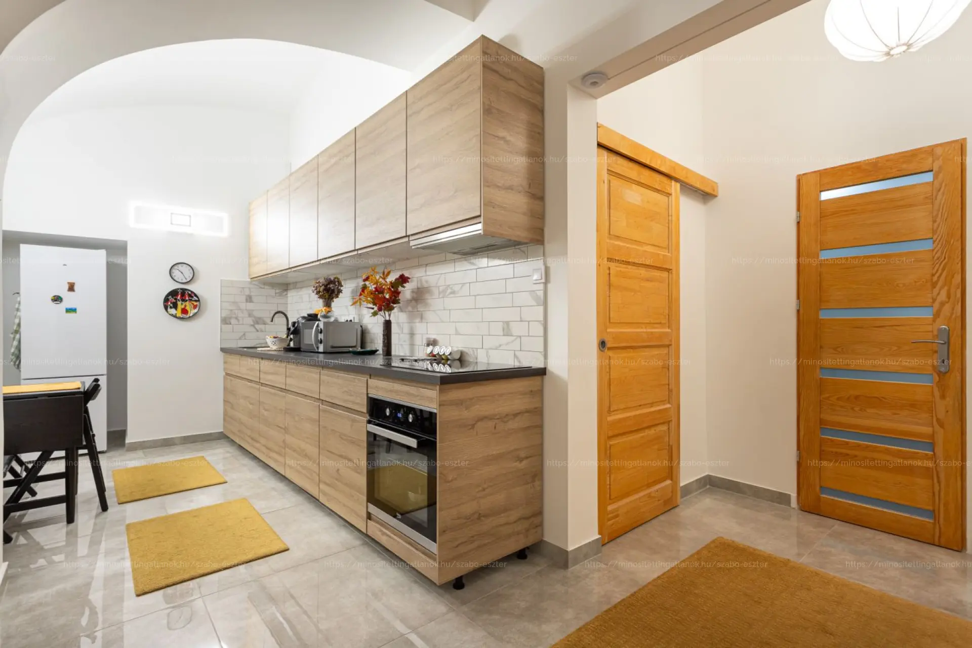 ✨ A csendes lakás földszinti, az ablakok a belső udvarra néznek. Az előtérből balra nyílik a konyha, itt található egy kis tároló, a fürdőszoba zuhanyzós, a szobák egymásból nyílnak. A konyhában és az előtérben padlófűtés van, a fürdőszobában és a szobákban elektromos fűtőpanelek. A vastag falak nagyon jól szigetelnek. A meleg vizet villanybojler biztosítja; vezérelt mérőóráról, azaz kedvezményes tarifával.