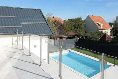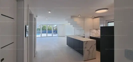 A kültér déli fekvésű: a medence és a terasz egész nap napfényben fürdik. Az automata öntözőrendszer és a robotfűnyíró biztosítja a gondozásmentes kertet. A terület csendes, barátságos környék – kávézó és olasz étterem pár perc sétára.