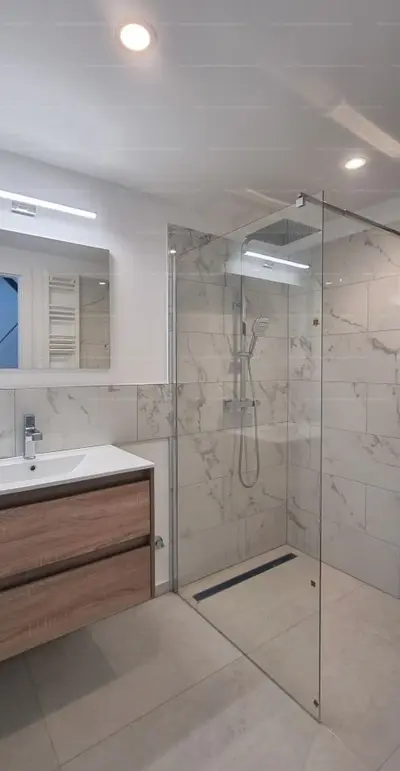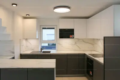 Ez az otthon nem csupán egy ingatlan — életstílus. A belső terek modern, prémium anyagokból készültek: olasz 60×120 cm padlólapok, Venato Bianco slimline munkalap, szálcsiszolt rozsdamentes acél élvédők és biztonsági üvegkorlátok. A fürdőszobák okostükörrel, digitális hőmérséklet-kijelzős csaptelepekkel és padlófűtéssel felszereltek. A villa minden tekintetben a legmagasabb igényeket is kielégíti.