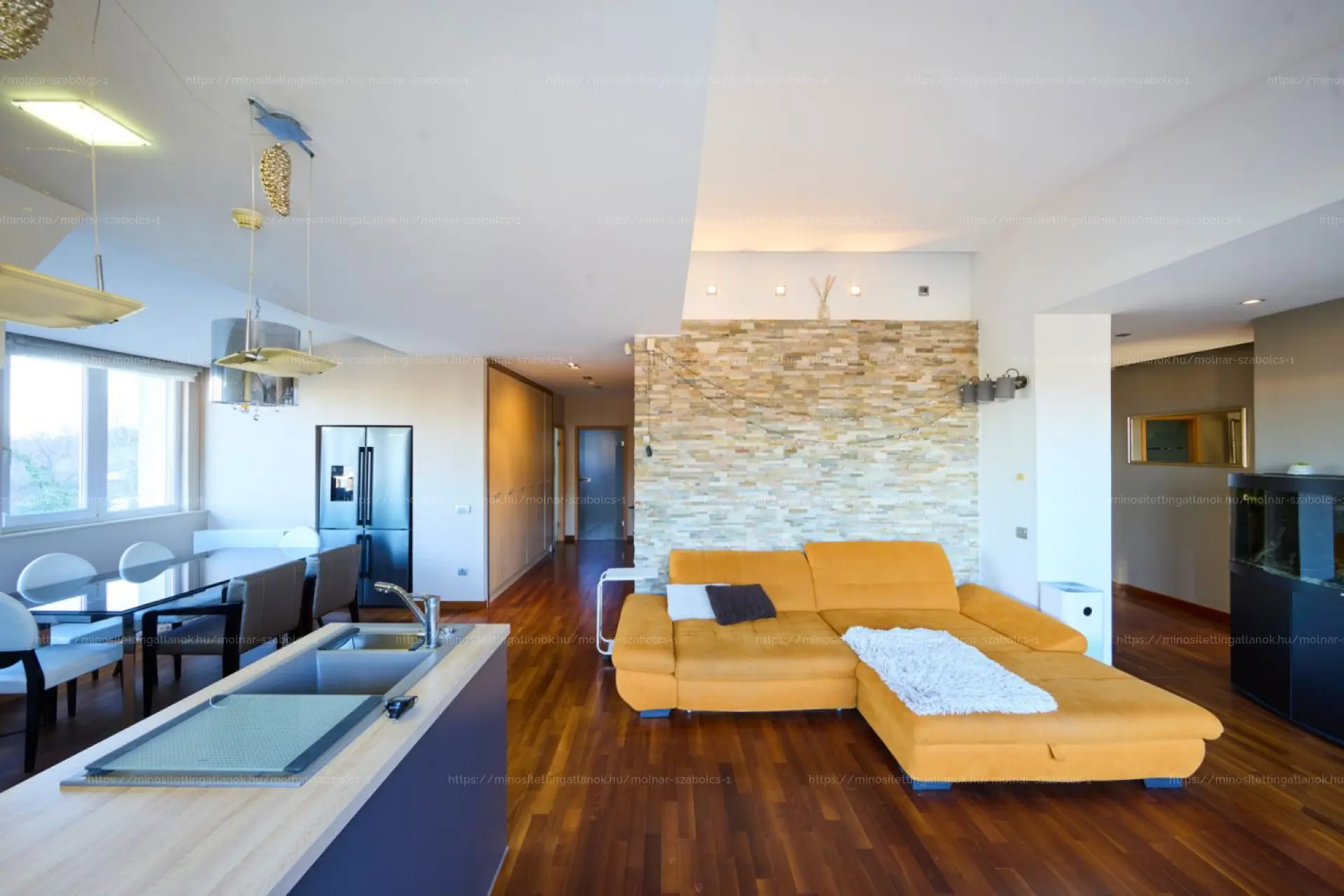 A 129 négyzetméteres lakás tágas, világos terekkel rendelkezik, elrendezése jól átgondolt és kényelmes. A nappali, étkező és konyha egybenyitott kialakítása ideális közösségi teret biztosít, míg a három szoba és a félszoba elegendő helyet kínál családtagok, dolgozószoba vagy vendégszoba számára. A két fürdőszoba a mindennapi komfortot szolgálja. A lakás egyik kiemelkedő eleme a közel 20 négyzetméteres, panorámás terasz, amely kellemes pihenőhelyet nyújt, valamint a nagy üvegfelületeknek köszönhetően egész nap világos. Az ingatlan jó állapotú, azonnal költözhető, a kellemes hőérzetről légkondicionáló gondoskodik. A biztonságos parkolás teremgarázs hely megvásárlásával biztosítható. 2 db parkolóhely + nagy méretű tároló 25M Ft.
