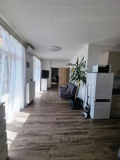 In Pécs, at Köztársaság Square, for rent an 86 sqm apartment with a large terrace, living room + 2 bedrooms, in excellent condition. The property is located on the 2nd floor of a brick building rebuilt a few years ago, modern, spacious, and bright. Both bedrooms open from the living room, the terrace is about 12 sqm. Closed courtyard car parking place for rent for an additional 15000 Ft.