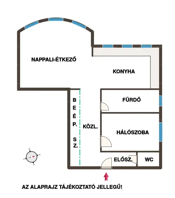 • 🌞 napsütötte helyiségek, látványos félköríves ablakok, valódi villahangulat
