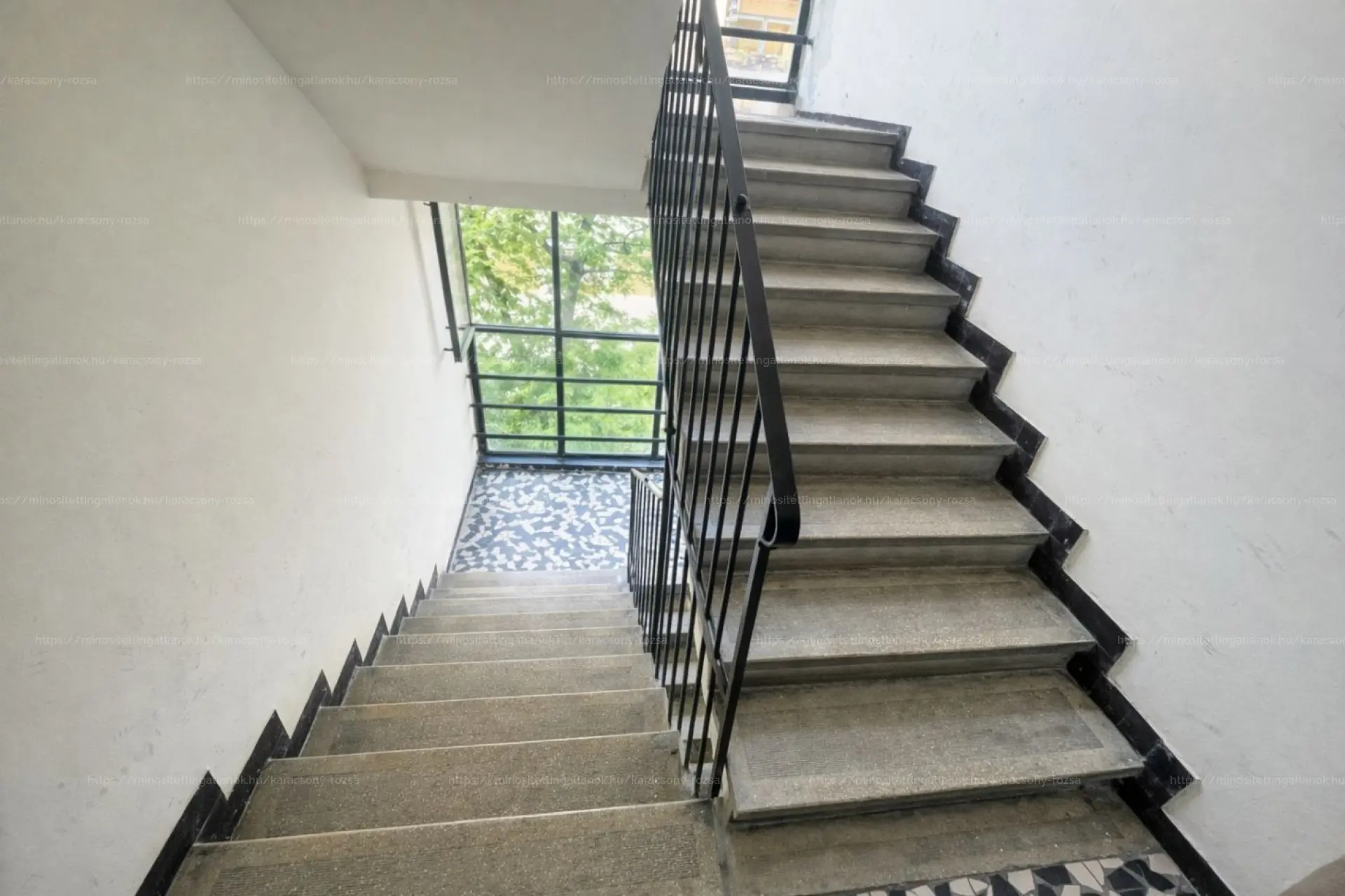 Háromszintes épület, rendezett lépcsőházzal; lift nincs.