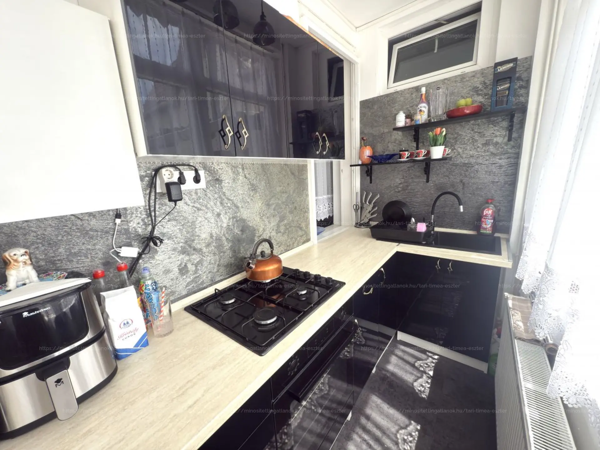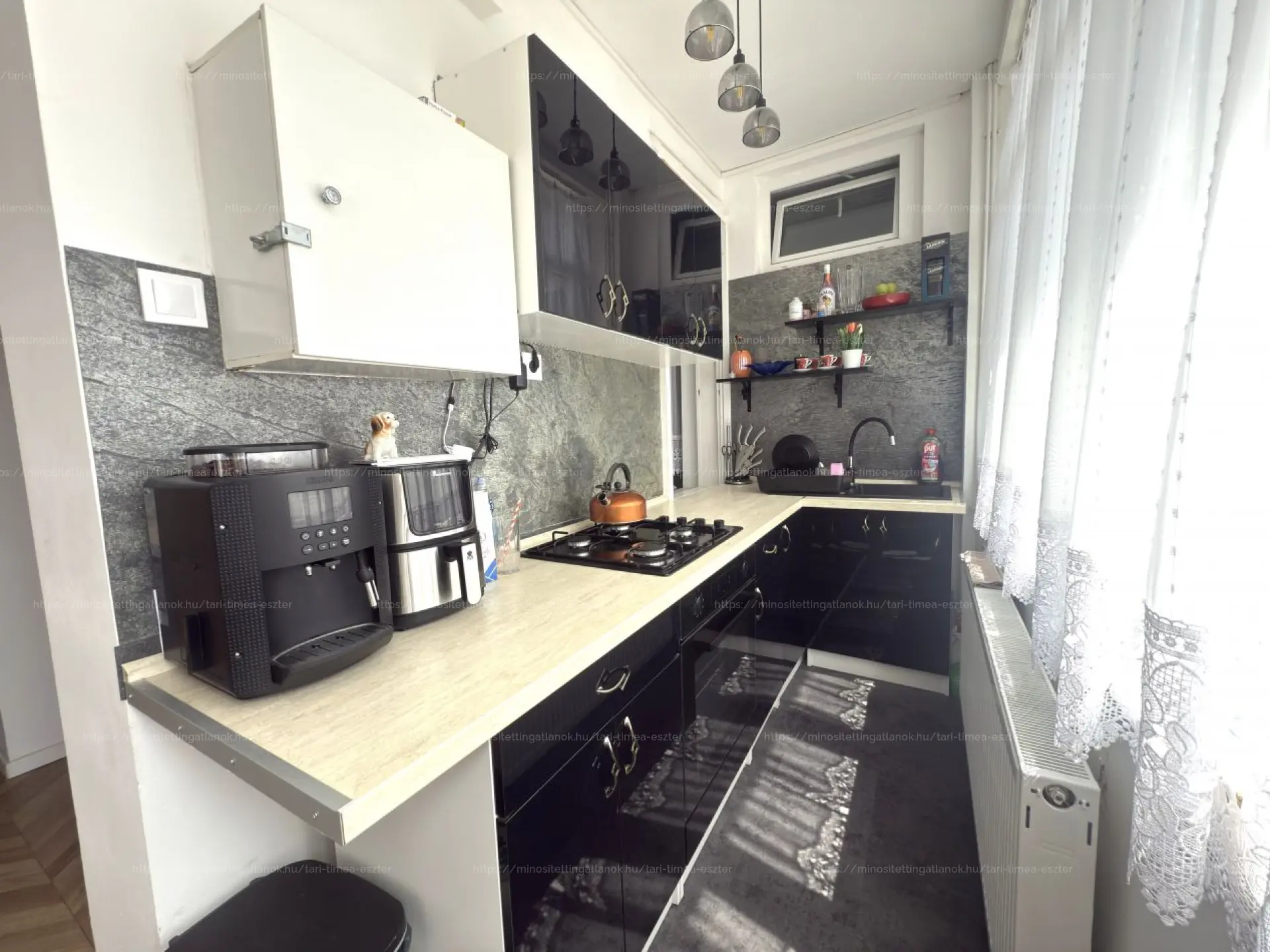 Az ingatlan átfogó felújításon ment keresztül nemrég: cserélve lettek a burkolatok, szaniterek, nyílászárók, a modern enteriőr minden részletében tükrözi az átgondolt kivitelezést. A fűtés gázalapú, radiátoros rendszerrel, amelyet megbízható, jól karbantartott rendszer biztosít, a kellemes hőérzetről pedig helyiségenként felszerelt hűtő fűtő klímák is gondoskodnak, így az év minden szakában kényelmes környezetet nyújt az ingatlan.