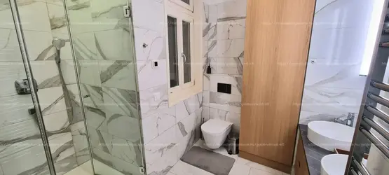 A fürdőszobában az épített zuhanyban egy elektromosan nyíló ablak is szolgálja a kényelmet (a nagyobb ablak mellett).