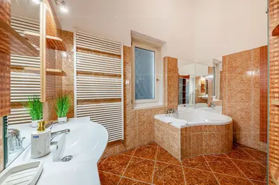 • Gépesített, exkluzív konyha és sarokkádas fürdő
