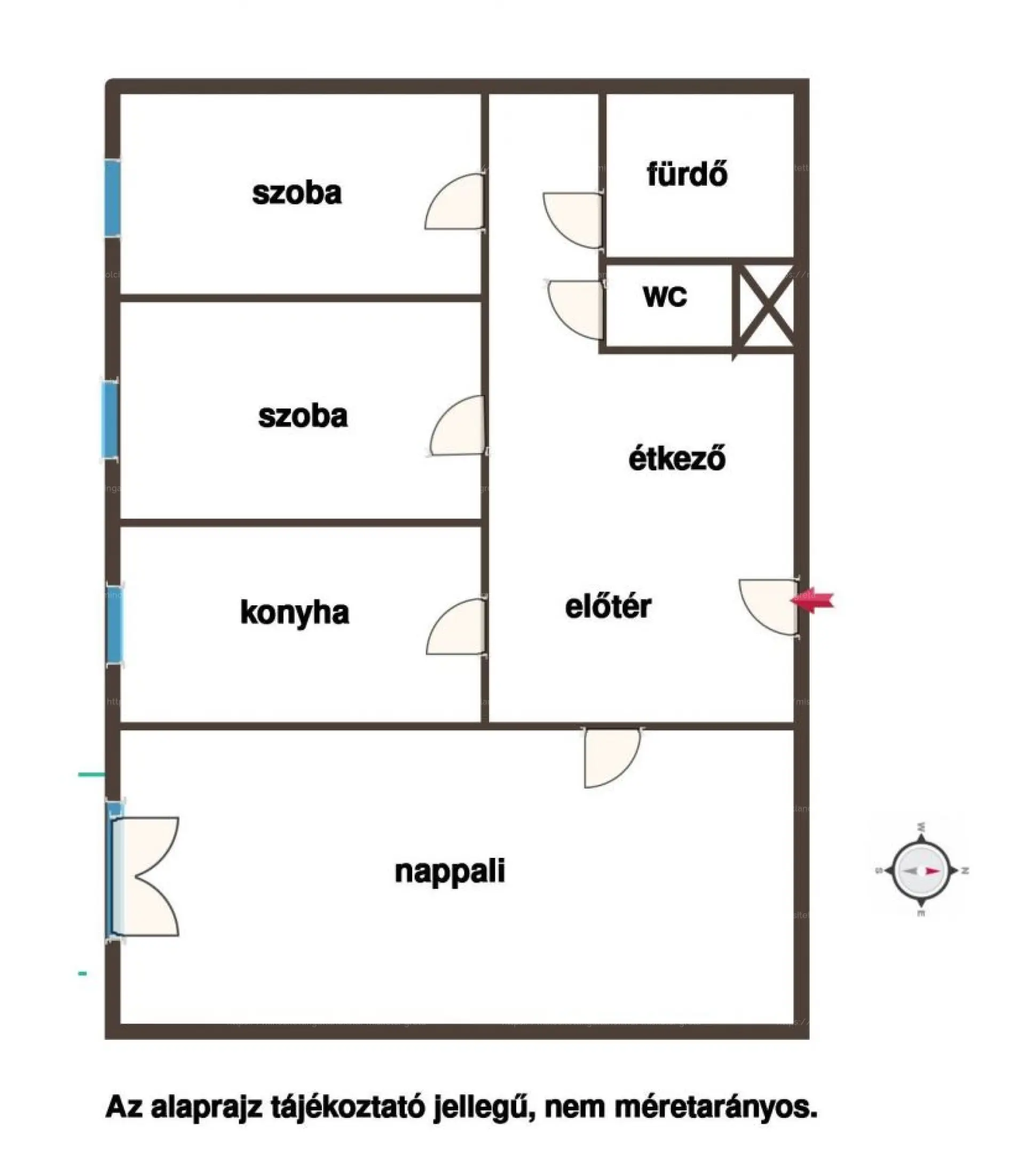 Az átgondolt elrendezésű ingatlanban nappali + 2 hálószoba, étkezős konyha, fürdőszoba és külön WC található tökéletes választás akár családoknak is.