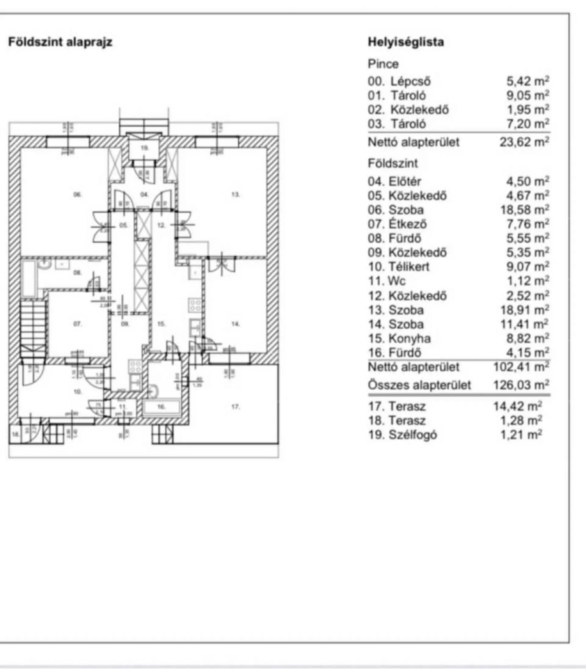 átalakítással egyszinten egy tágas, 1 nappali + 3 hálószobás családi ház is kialakítható