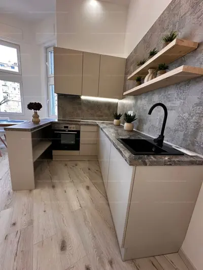 2. A kislakás teljes körűen gépesített és bútorozott!!! Konyhája új konyhabútorral, elektromos főzőlappal és sütővel, páraelszívóval és mikrohullámú sütővel felszerelt. A nappaliba dizájnos kanapé, étkező, a hálórészbe pedig franciaágy kerül. A lakásba hűtő-, fűtőklíma kerül és a hideg hónapokban norvég, elektronikus fűtőpanel gondoskodik az otthon melegéről. A teljes berendezés a vételár részét képezi!!!