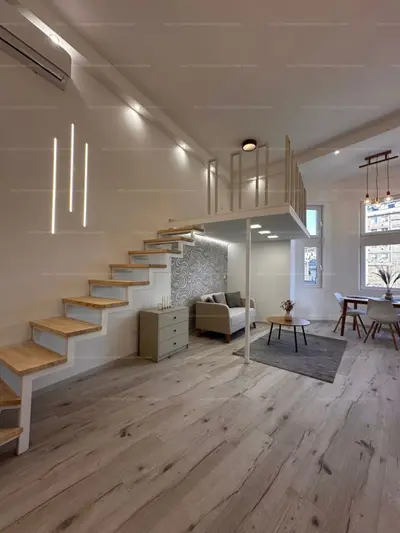 A lakás alapterülete 38 nm és tartozik hozzá egy 5 nm-es ÁLLÓGALÉRIA.