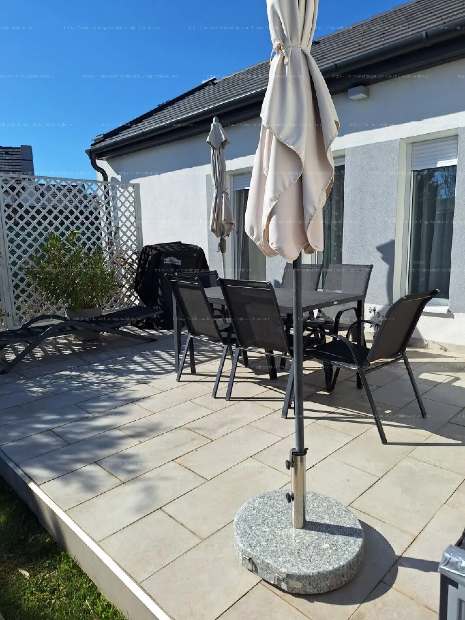 Ehhez kapcsolódik egy kb 20 nm-es terasz is, mely a beültetett, 739 nm-es kertben folytatódik.